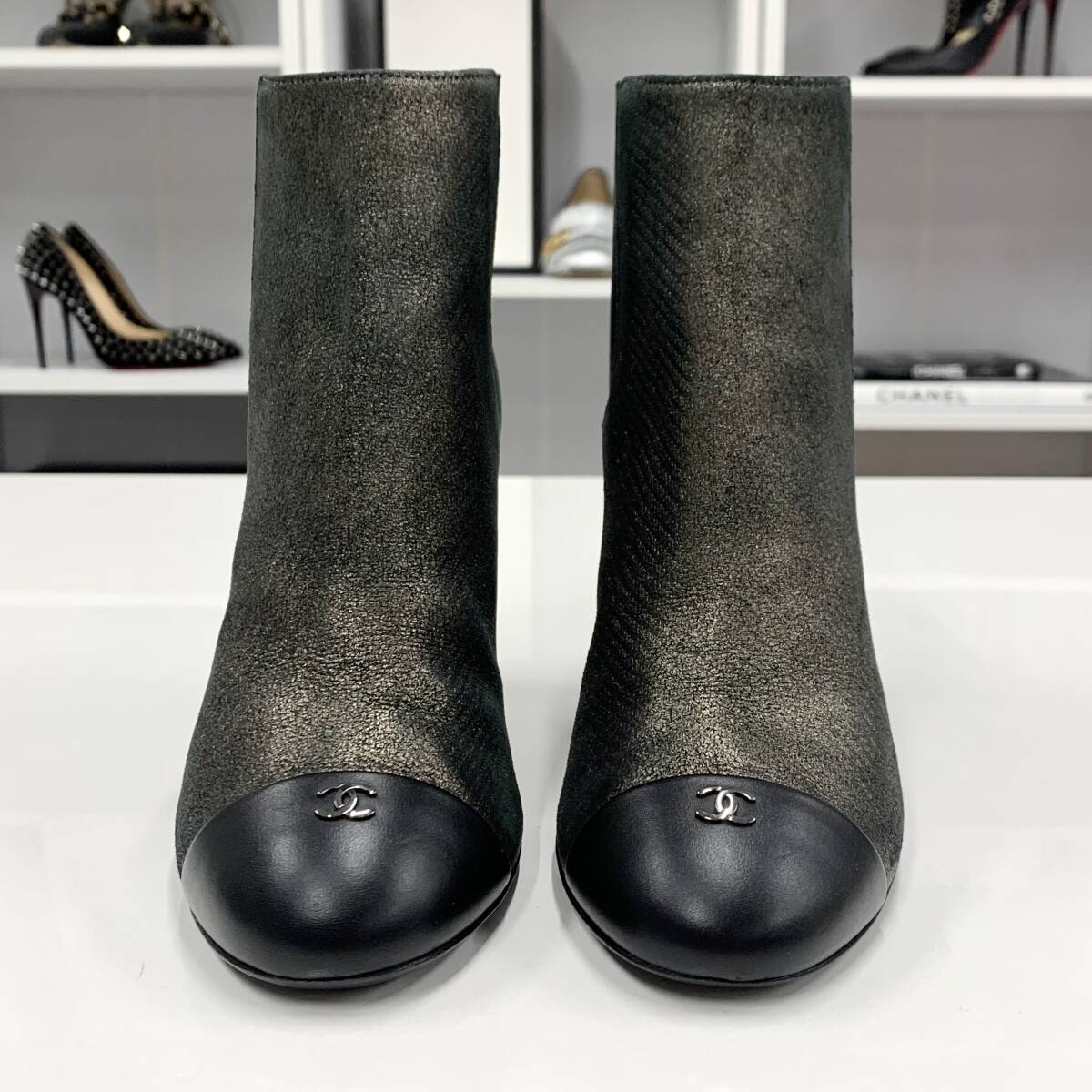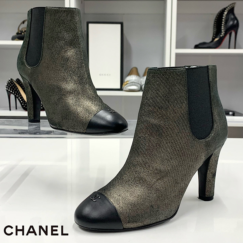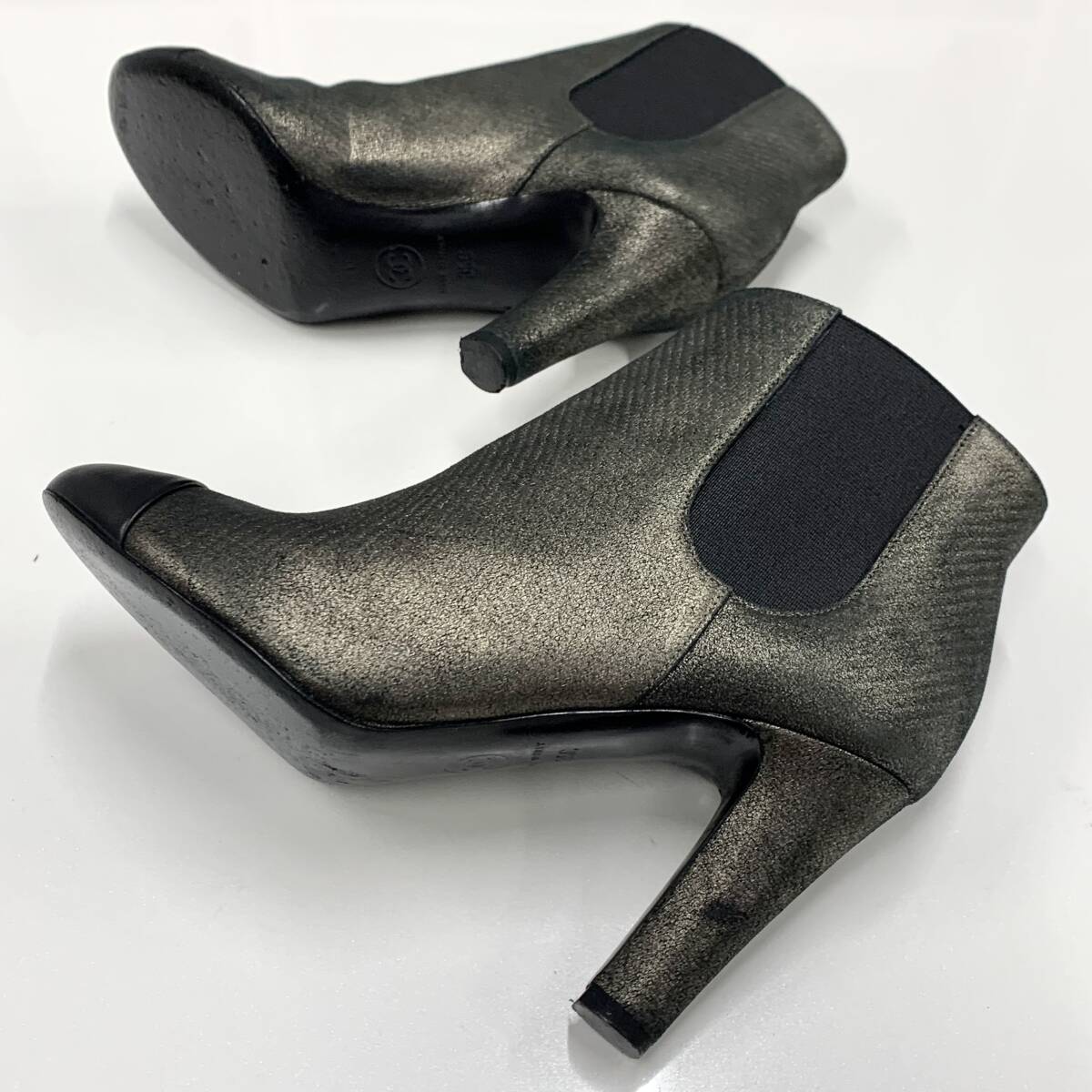 2466 シャネル ココマーク レザー サイドゴア ショートブーツ メタリック ブラック
