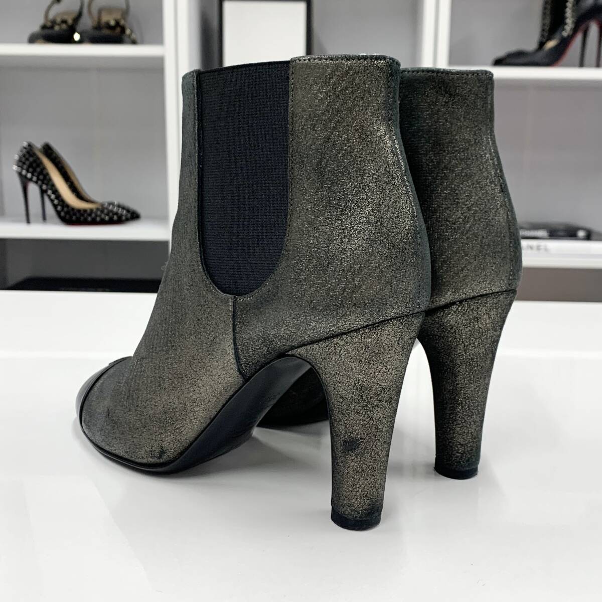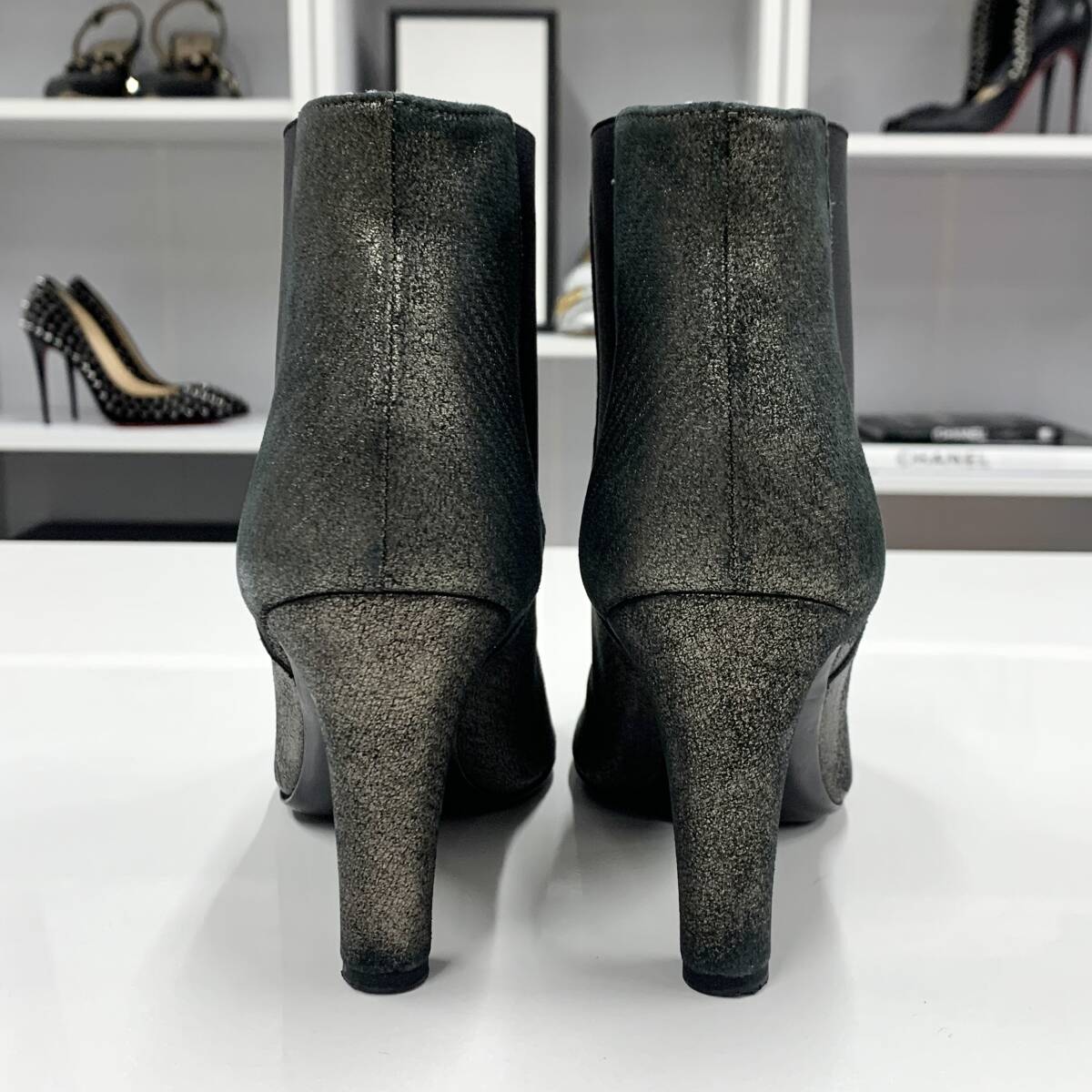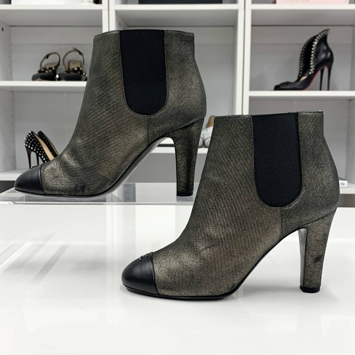 2466 シャネル ココマーク レザー サイドゴア ショートブーツ メタリック ブラック
