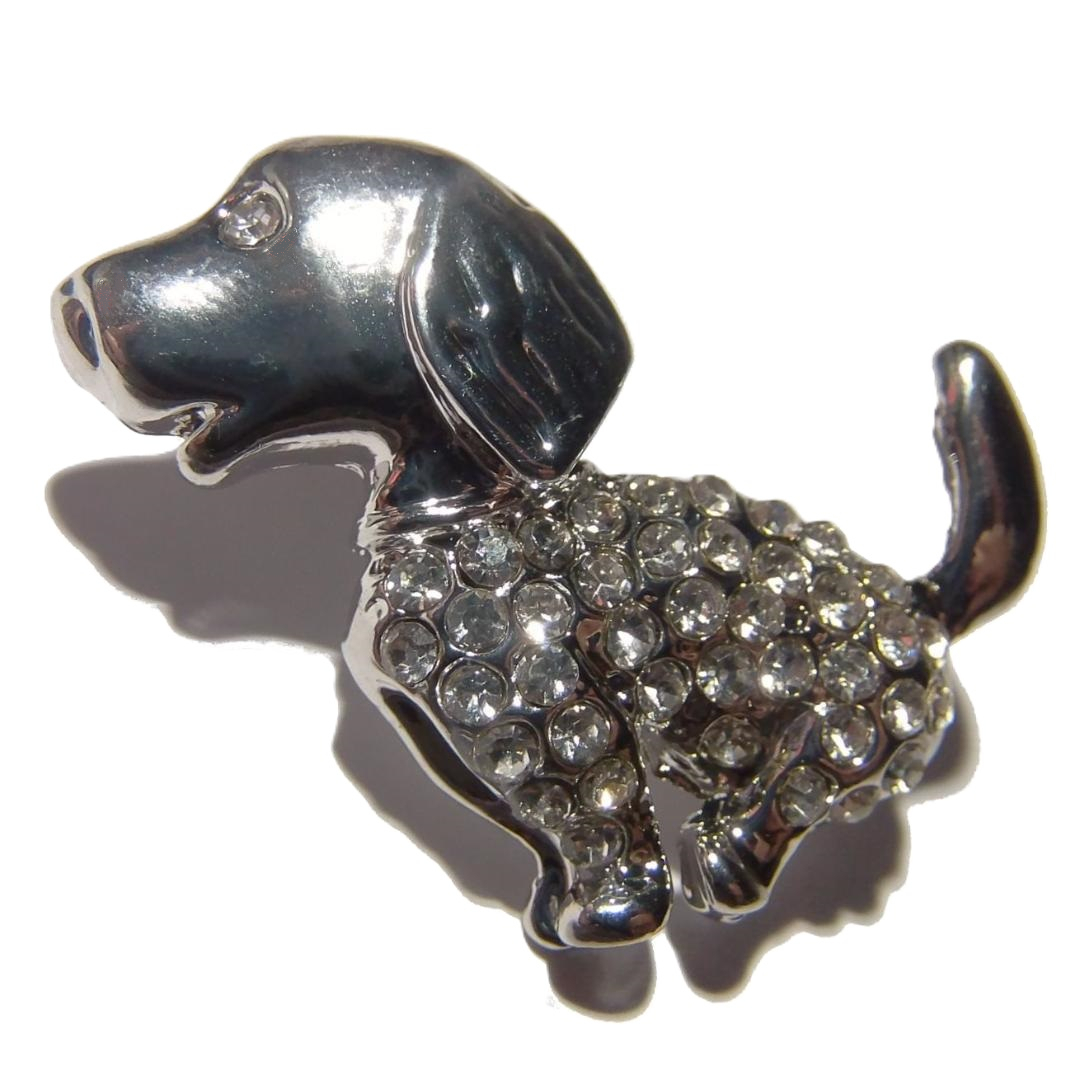 ラインストーンの犬のブローチです。
