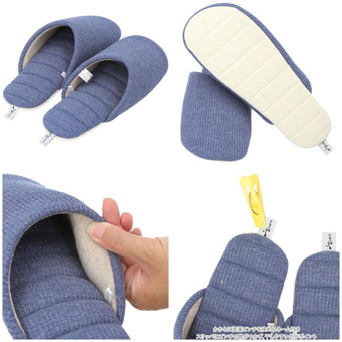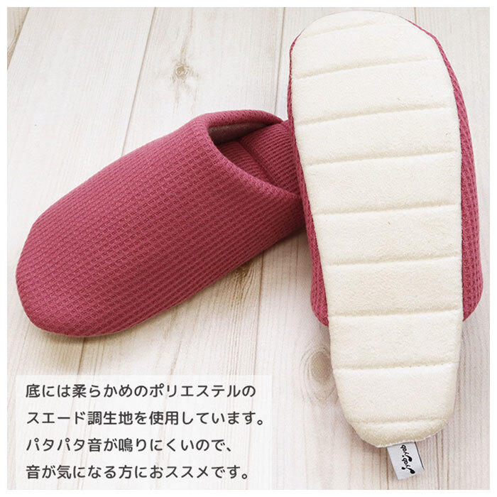 商品説明 | ・・洗って絞れる「ジャブジャブシリーズ」から、ワッフルタイプのスリッパが登場。 ・洗濯機でも手洗いでもジャブジャブ洗える!お洗濯後はスリッパをギュッと絞り、吊り下げて乾かせるお手入れがラクチンなスリッパ!(※水温40度以下。洗濯機で洗う場合は、洗濯ネットを使用してください。) ・かかとに洗濯ピンチを挟めるネーム付き。スリッパにピンチの跡がつかず、干しやすいのがポイント。 ・表面は編み物と織り物を組み合わせたような、ワッフル素材を採用!ざっくりとした風合いで、素足でも優しい履き心地。 ・中敷きに芯のような硬い素材を使っていないので、スリッパ全体が折り曲がるくらいの柔らかさ♪スリッパと靴下の間のような感覚で履けちゃう! ・中敷きと底のステッチは、絞ってもよれにくく形が戻る仕組み◎ ・底面に柔らかいスエード調生地(ポリエステル)を使用。歩いた時にパタパタ音が鳴りにくく、音の気になる方にぴったり。 ・ご家族お揃いで使える2サイズ展開! |