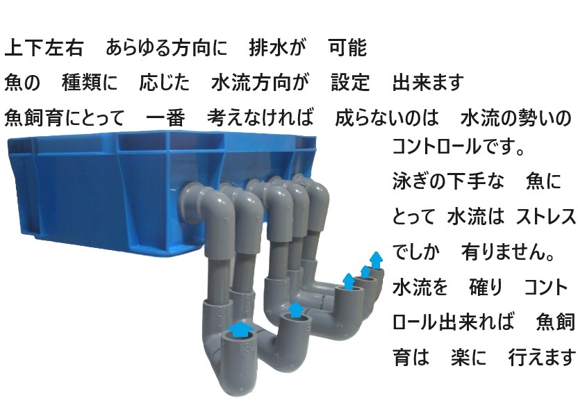 上向き吹上排水が 可能で 泳ぎの下手な メダカや 丸物金魚飼育に 最適な 濾過槽です。