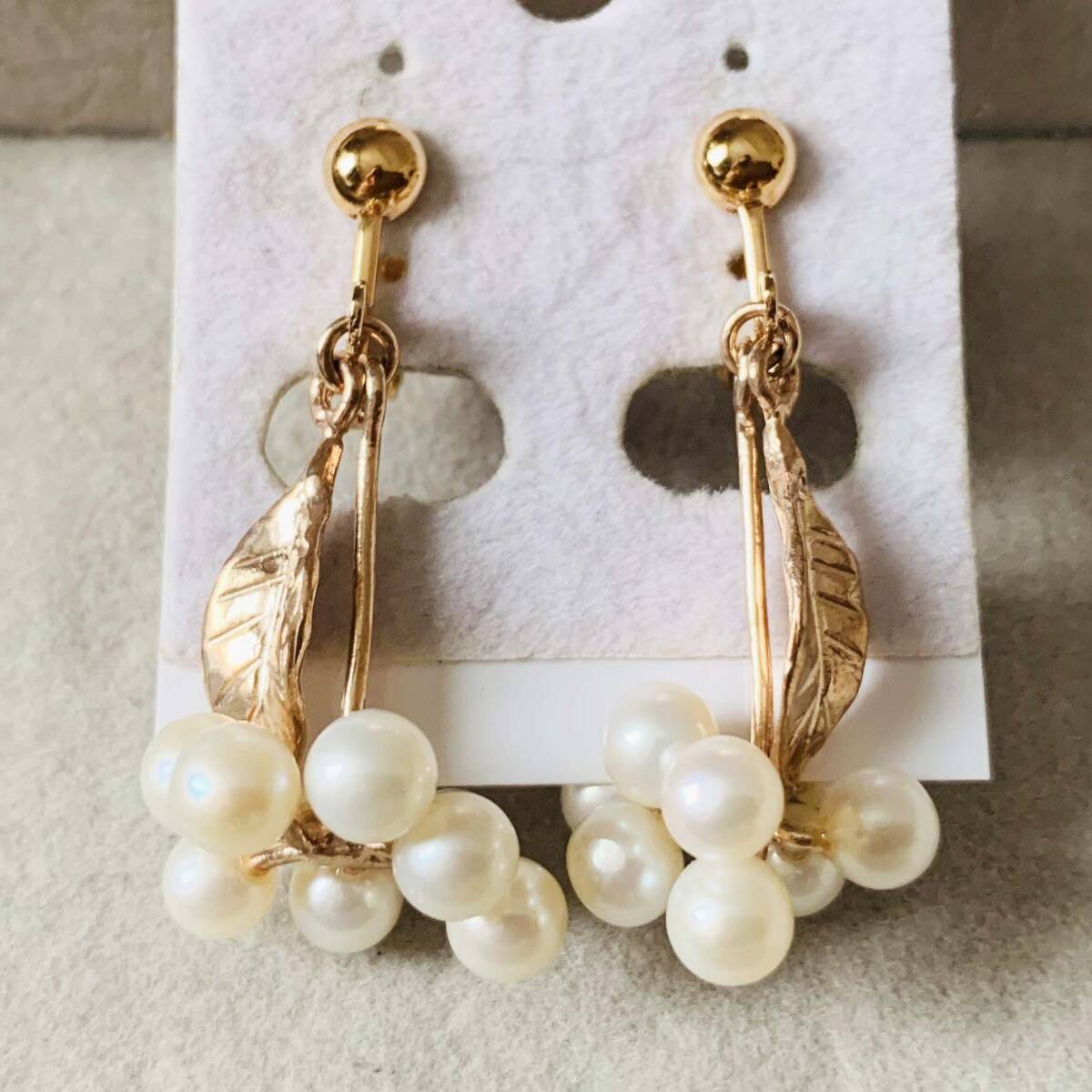 美品 天然本真珠パール 925シルバー銀製 ゴールド イヤリング No.5924