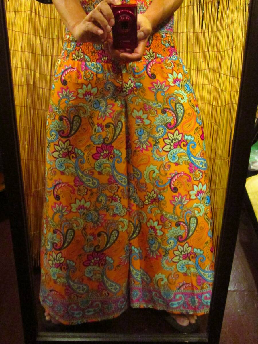⑥新品*ポリエステル素材*サリー生地*ペイズリープリント*ワイドパンツ