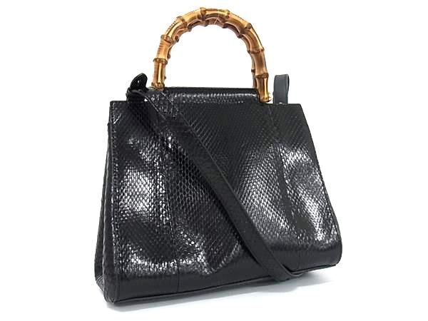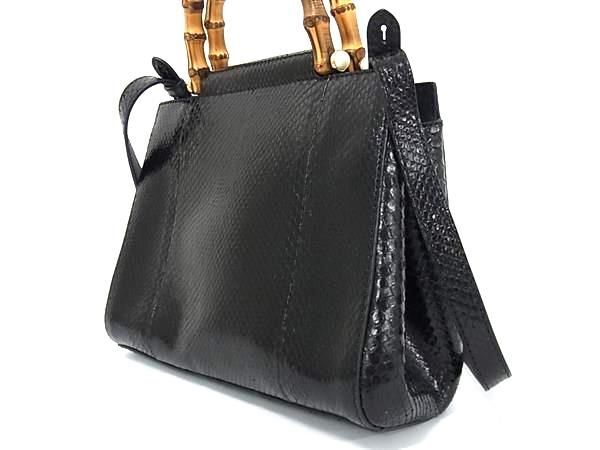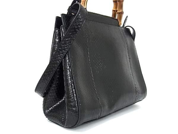 ■極上■本物■極美品■ GUCCI グッチ 453767 204991 バンブー パイソン パール 2WAY ハンドバッグ ショルダー ブラック系 BK1734