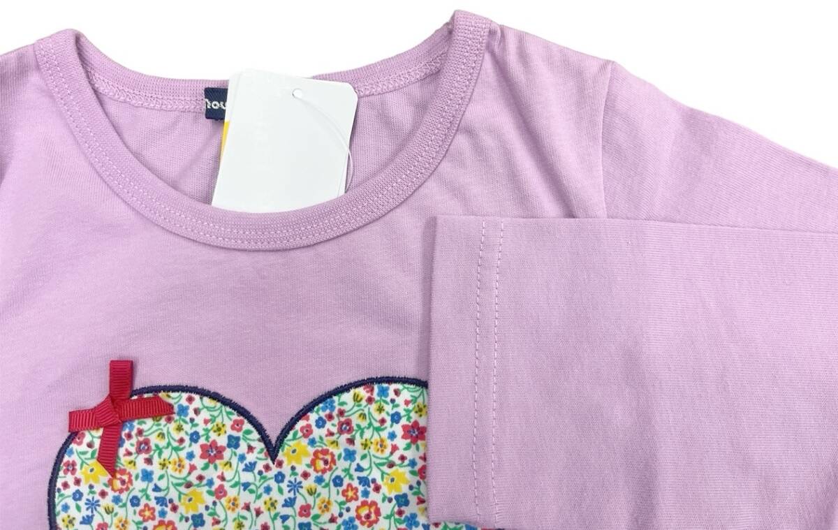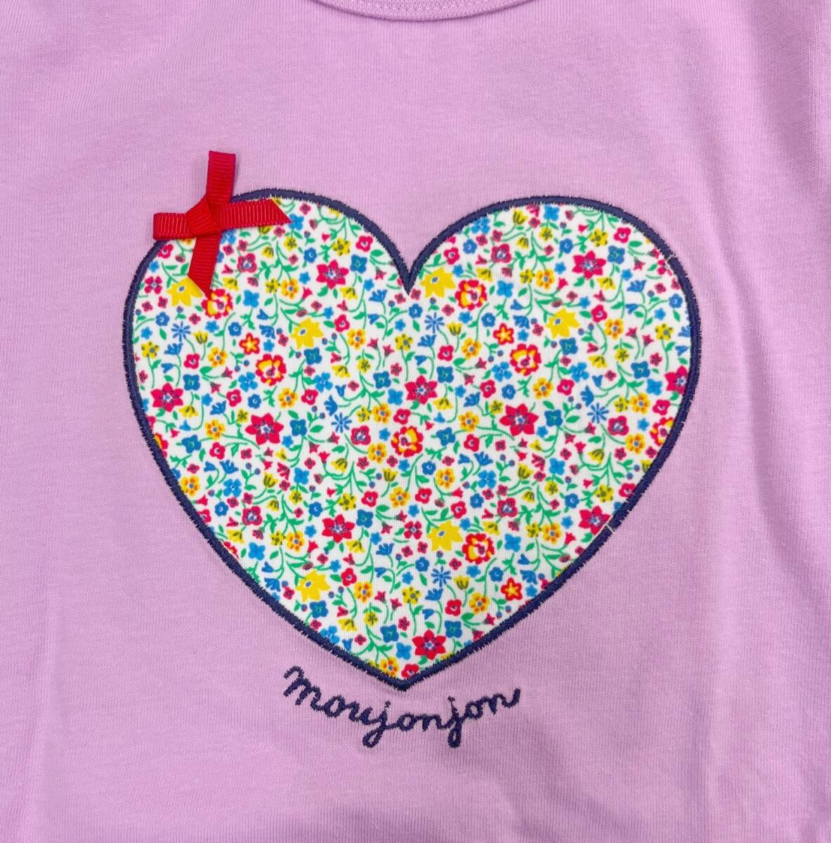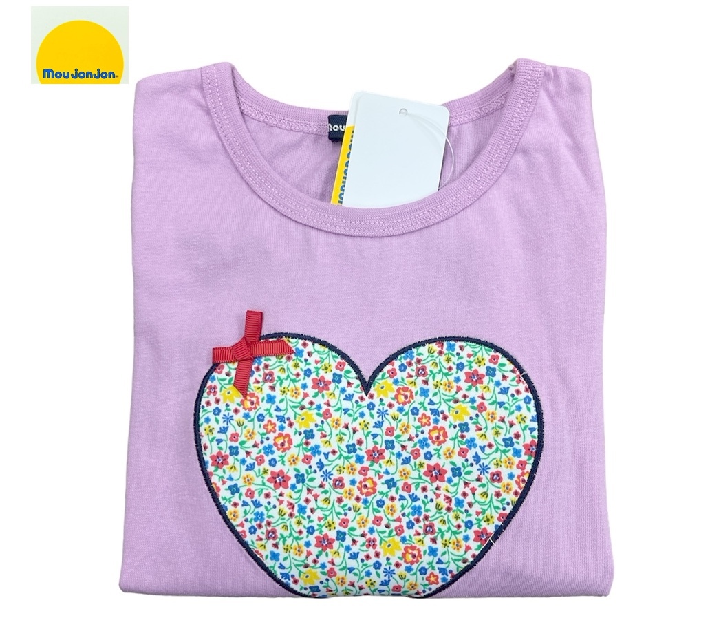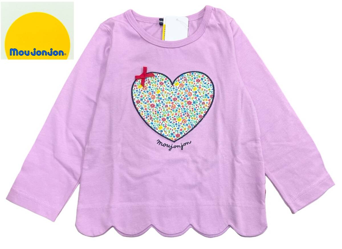 お手頃プライス 即決★新品タグ付 Moujonjon ムージョン★大きいハートのアップリケ 天竺 長袖Tシャツ★良質素材★110cm 5-6才 ¥1430