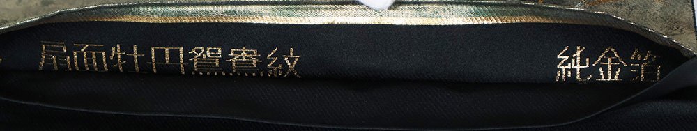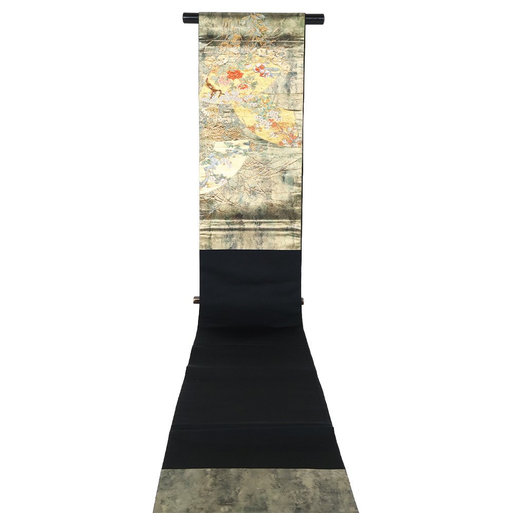| 色・柄 | 服部織物謹製 西陣織袋帯 扇面牡丹鷺鶯紋 純金箔 緑金引き箔地花鳥扇紋 (写真では上手く色が出ない場合があります。ご了承下さい) ※お使いのディスプレイの種類や設定の差により 実物の色と画像の色が少々異なることもございます。 写真の枚数が多いので一度パソコンでご覧ください。 |