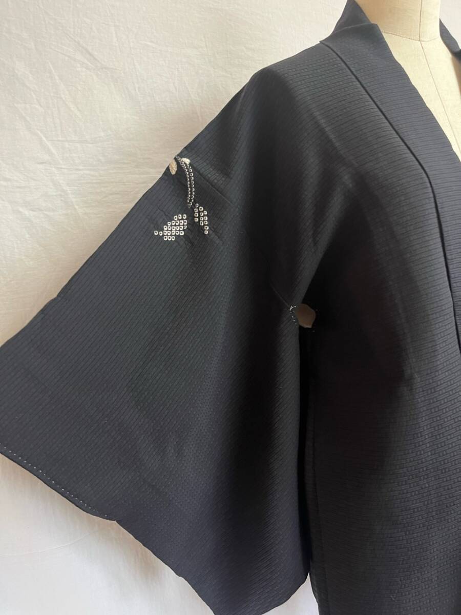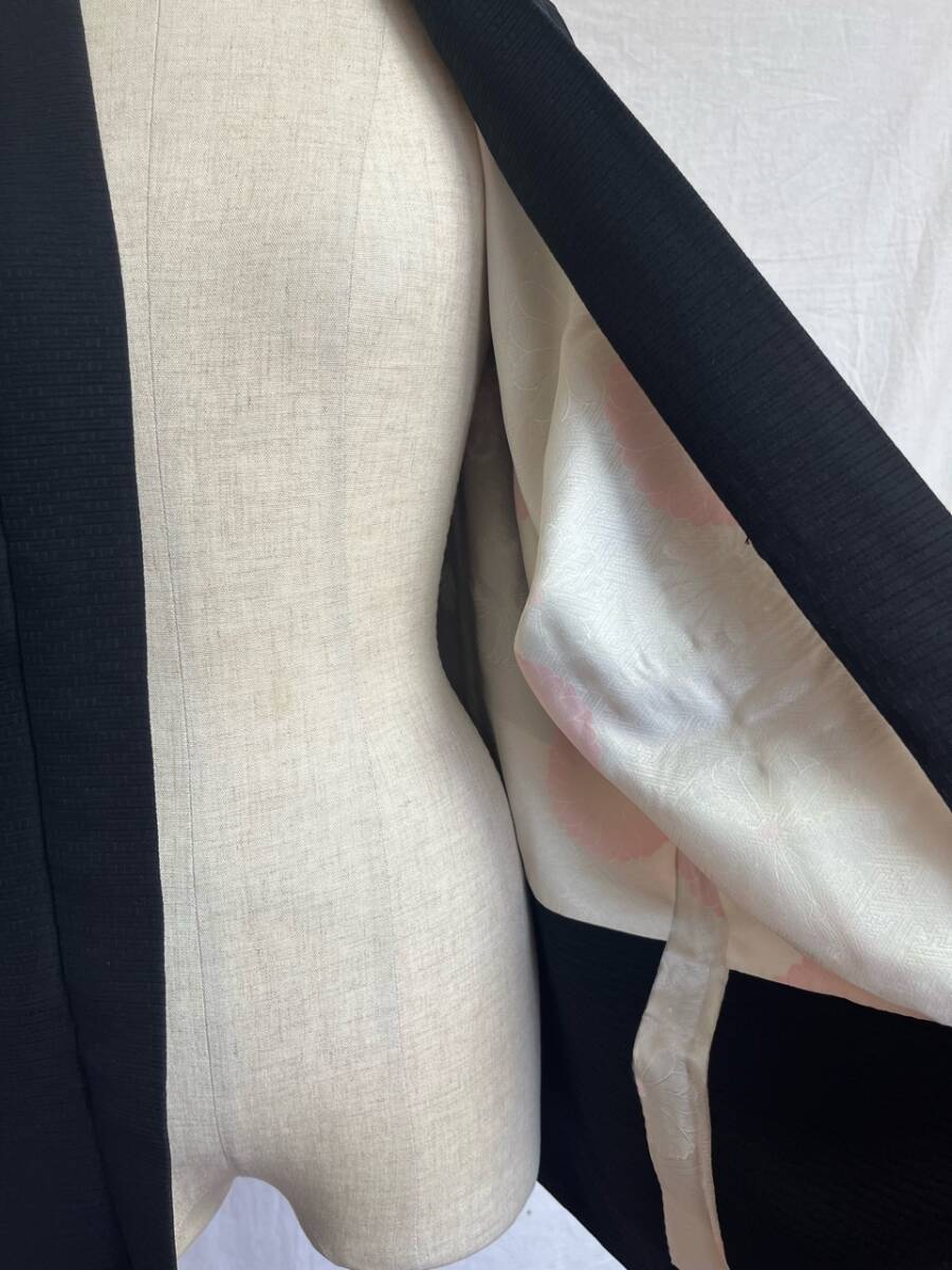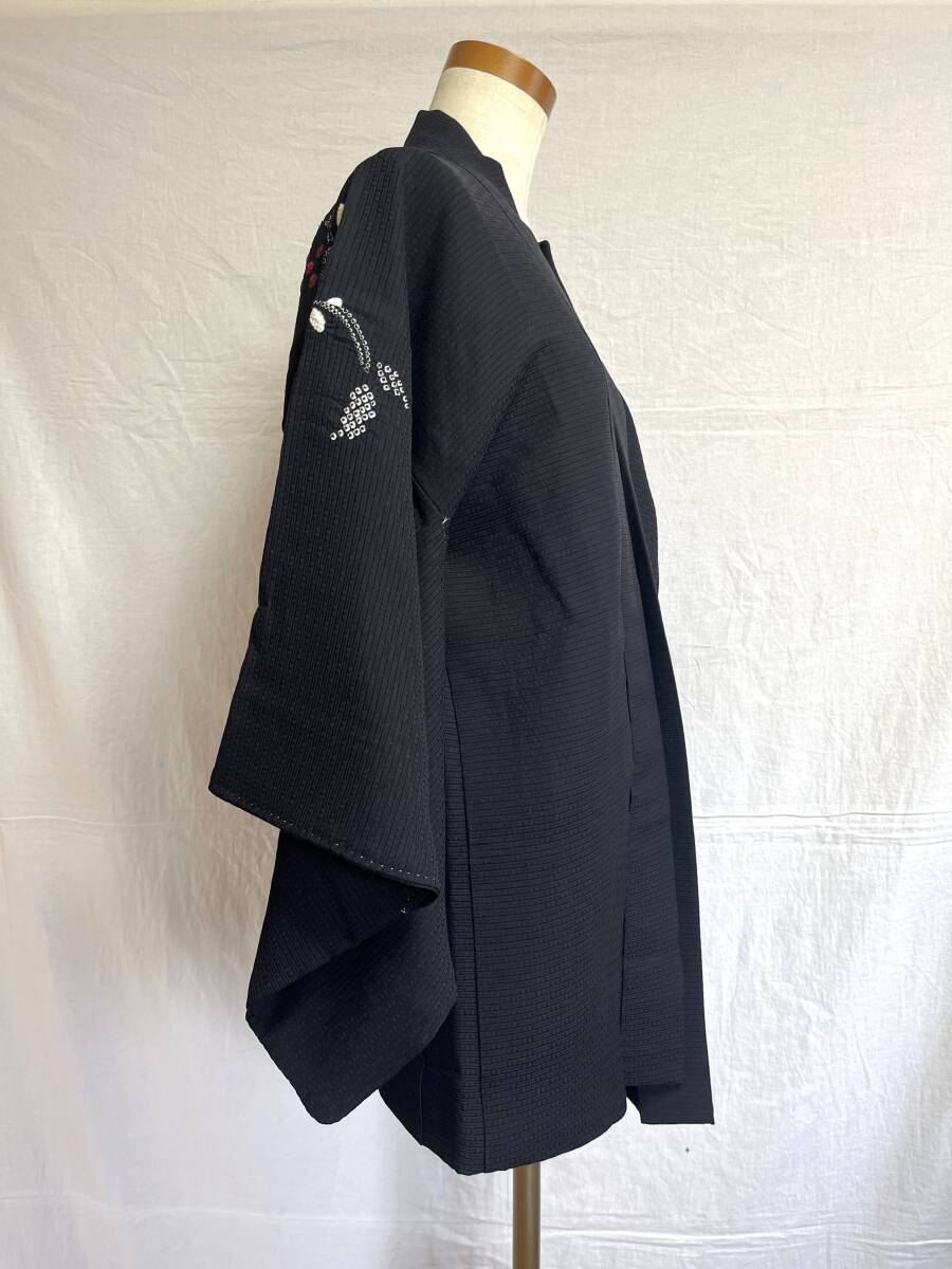0001★羽織*黒*手縫い*花*柄*模様*道中着*着物*和服*和装*レトロ*アンティーク*お得*レディース★
