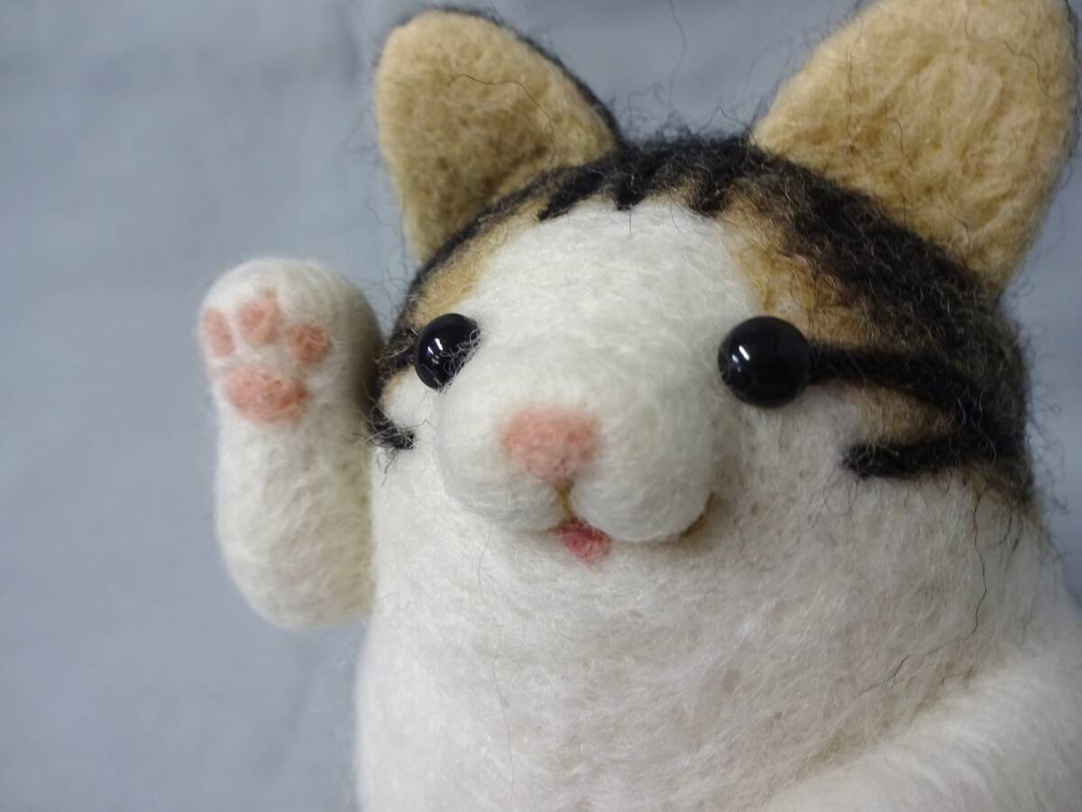 オーダーメイド招き猫 羊毛フェルト製 人形 置物 高さ:約11cm 横幅:約8cm 奥行:約8cm Takahashi Rico キジ白