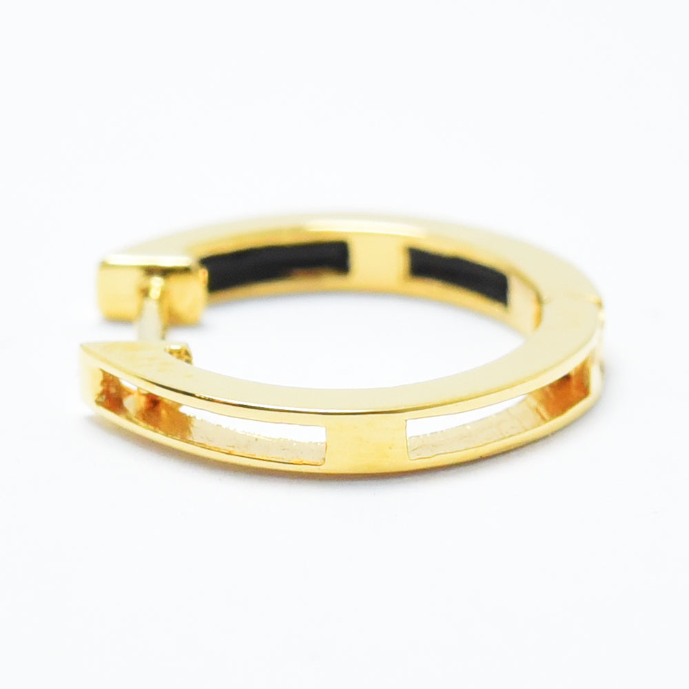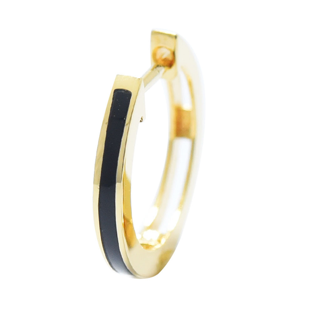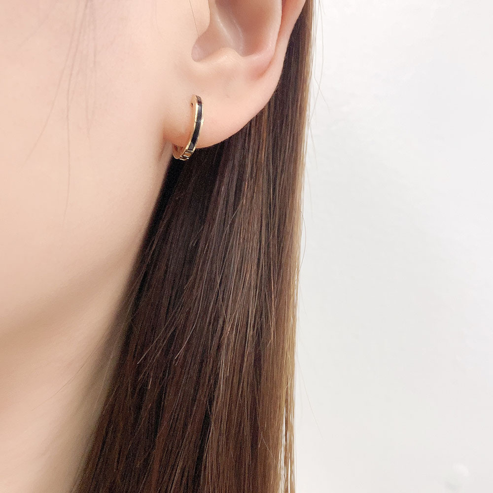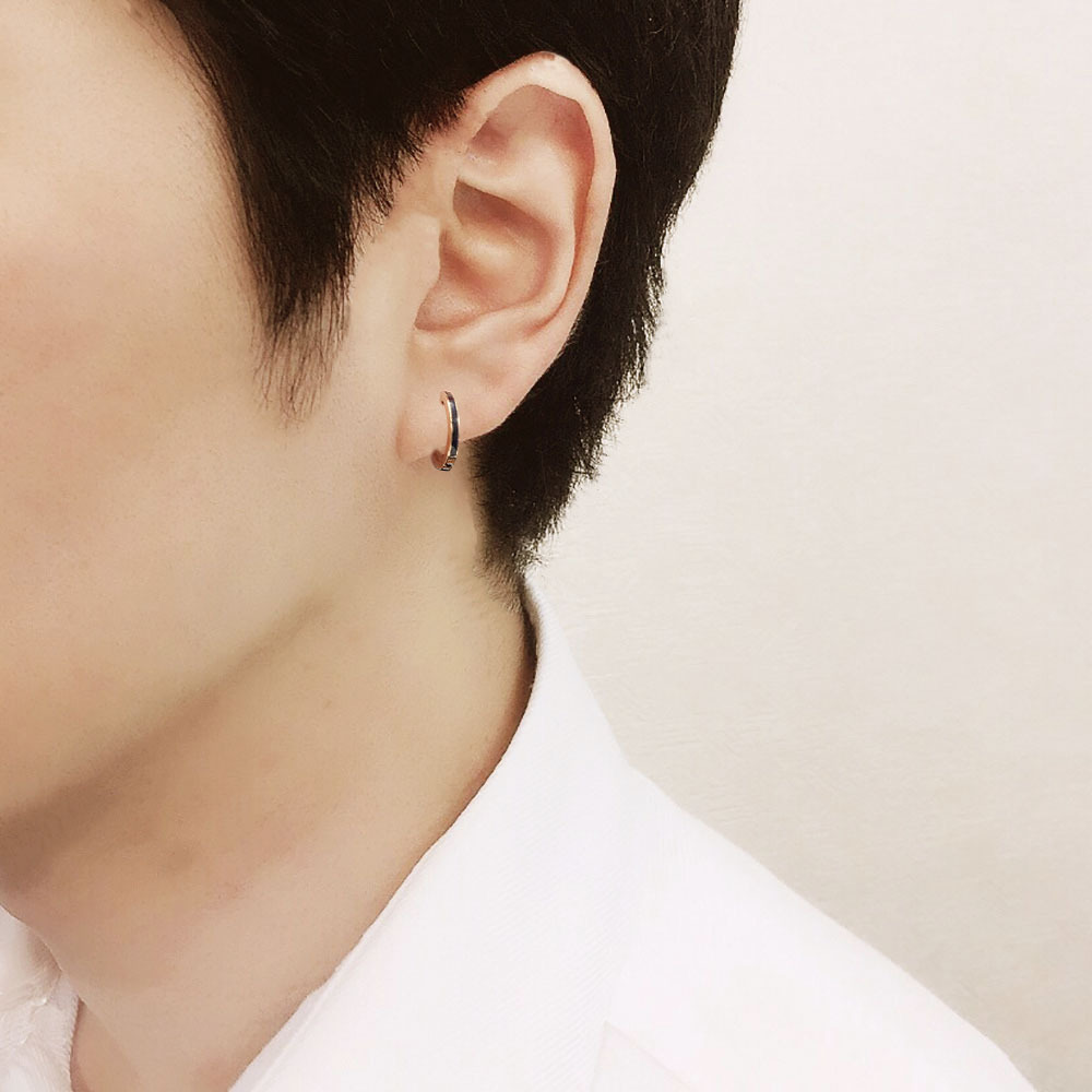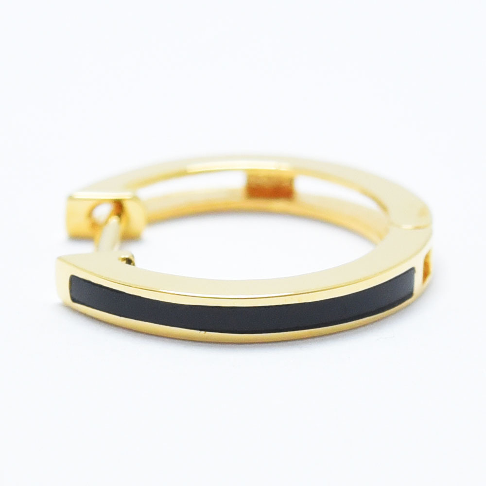イエローゴールドとオニキスのコントラストがクールな印象のピアスです。留め金具はワンタッチで留めやすく落ちにくい中折れ開閉式です。 |