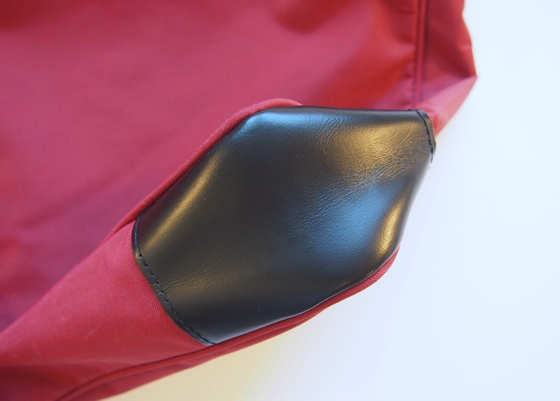 ハンドルは定番のエルベの持ち手と同じ素材ですが、トートでは手で持つ部分が二重に縫い付けてありますが、こちらは折ってはありますが縫い付けていないのでハンドルは平らな状態になります。バッグを肘に下げて持ちたい時に腕に食い込みを防ぎ、重さを軽減します。