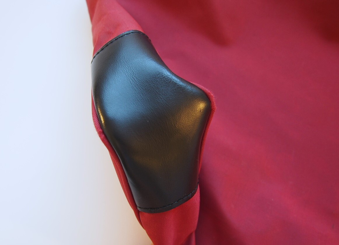 1回のみの使用の個人保管品。90年代頃のUSEDヴィンテージ。ほとんど使用していませんので、底のレザーの角のスレもなく、レザーには光沢もございます。主観では全体として綺麗な状態かと思いますが、本体赤の部分に黒い小さな汚れが2,3カ所程度みられます。また、マチ部分一方に小さな気泡が少しだけ見られます。(画像ご参照ください)いずれもさほど目立たないかと思いますが気になる方はご遠慮下さい。ファスナー引手部分にはアタリによるスレがございます。