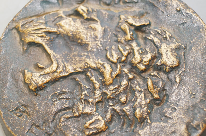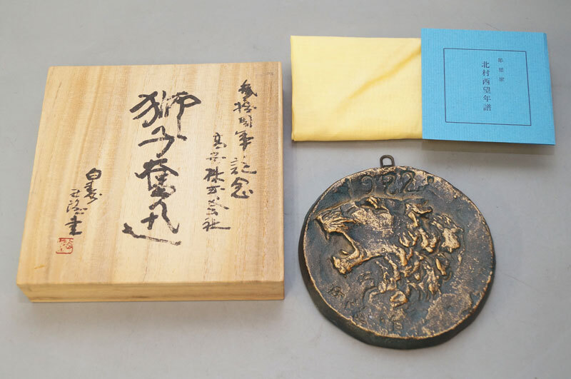 【真作】北村西望 獅子奪迅 レリーフ ブロンズ 共箱 1982 彫刻家 文化勲章受賞-700