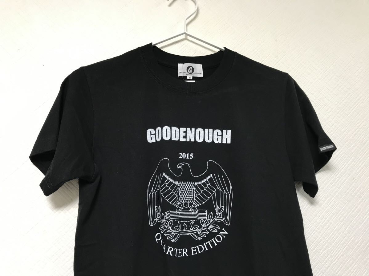 商品名:新品未使用本物グッドイナフGOODENOUGHコットンプリント半袖Tシャツメンズサーフアメカジミリタリーストリートスケーターワークビジネススーツモードゴルフ黒ブラックS