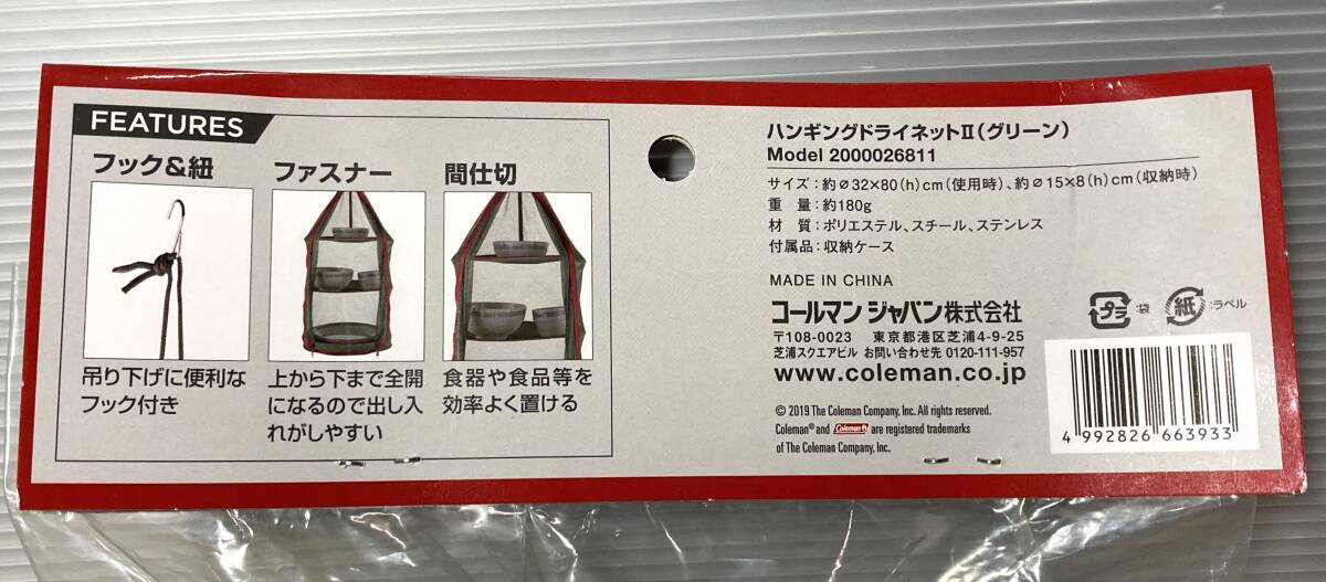 未使用未開封品 Coleman コールマン ハンギングドライネットⅡ(グリーン) 2000026811