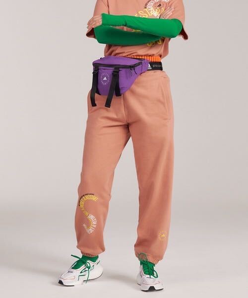 adidas by Stella McCartney ブランドのミッションを脚にあしらった、カラフルでポップなスウェットパンツ。