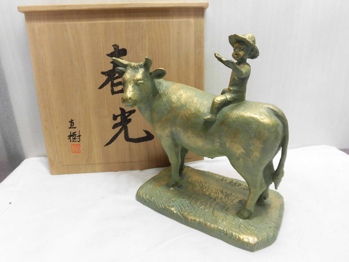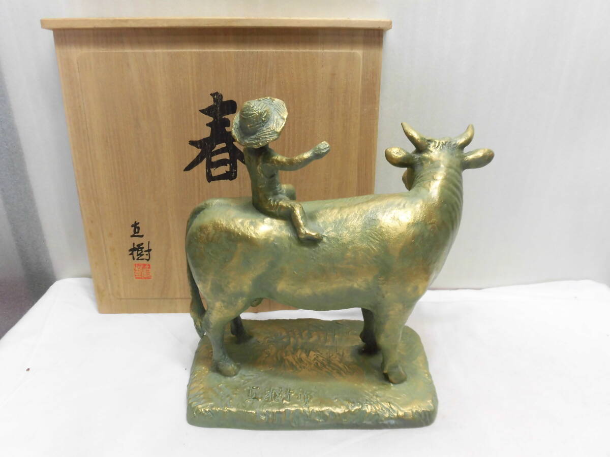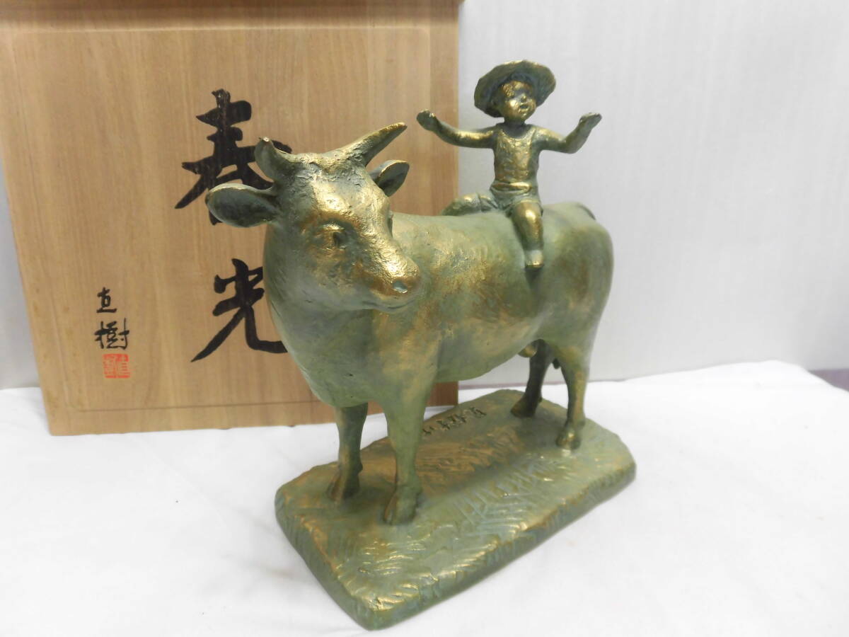 文化功労者=富永直樹=春光=牛と子供=ブロンズ(共箱付き)
