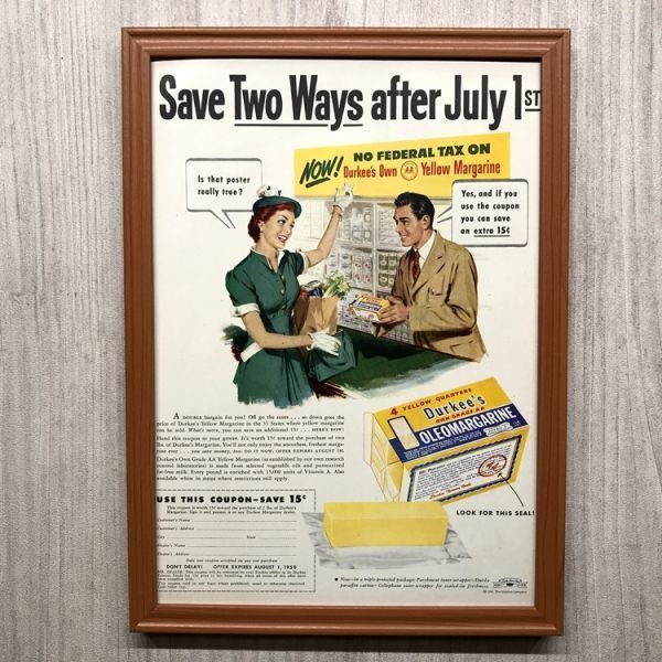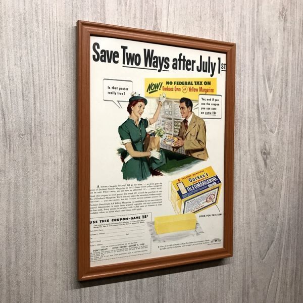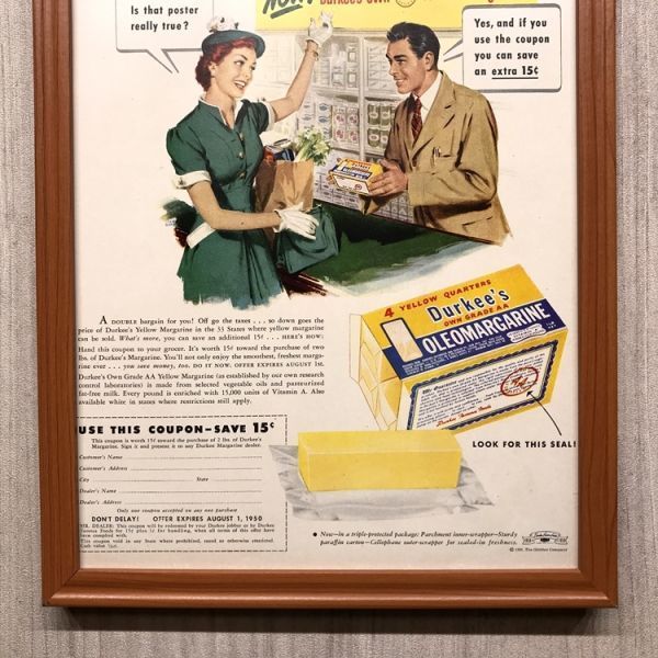 ◆即決◆1950年(昭和25年) Durkee's ダーキーズ マーガリン【B4-7473】アメリカ ビンテージ雑誌広告【B4額装品】当時物/本物広告 ★同梱可