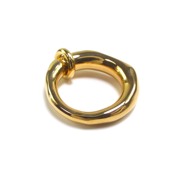 | 滑らかな曲線が美しいハンドメイドのジルサンダーのゴールドリング。 トップのサイドに小さなリングを備えた可愛らしいデザインは印象に残る指先を演出してくれるミニマルな指輪。 是非この機会に如何でしょうか。 |
