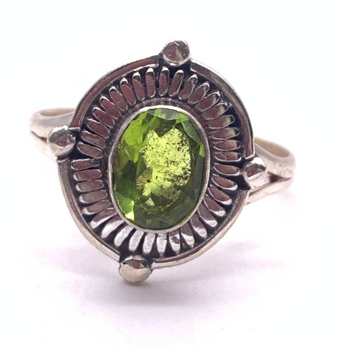 天然石ペリドット アンティーク風 silver925リング☆18.5号