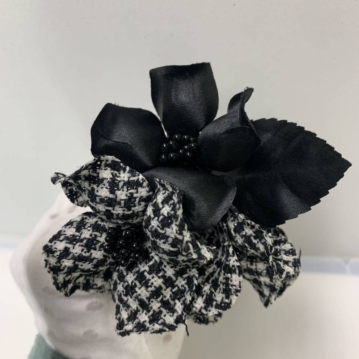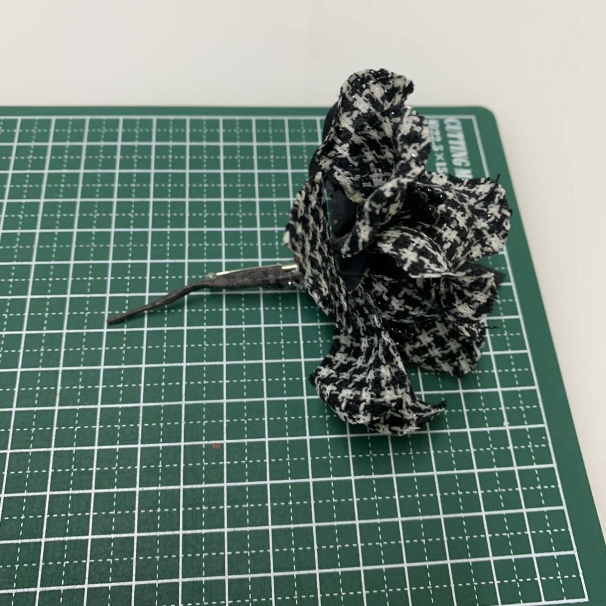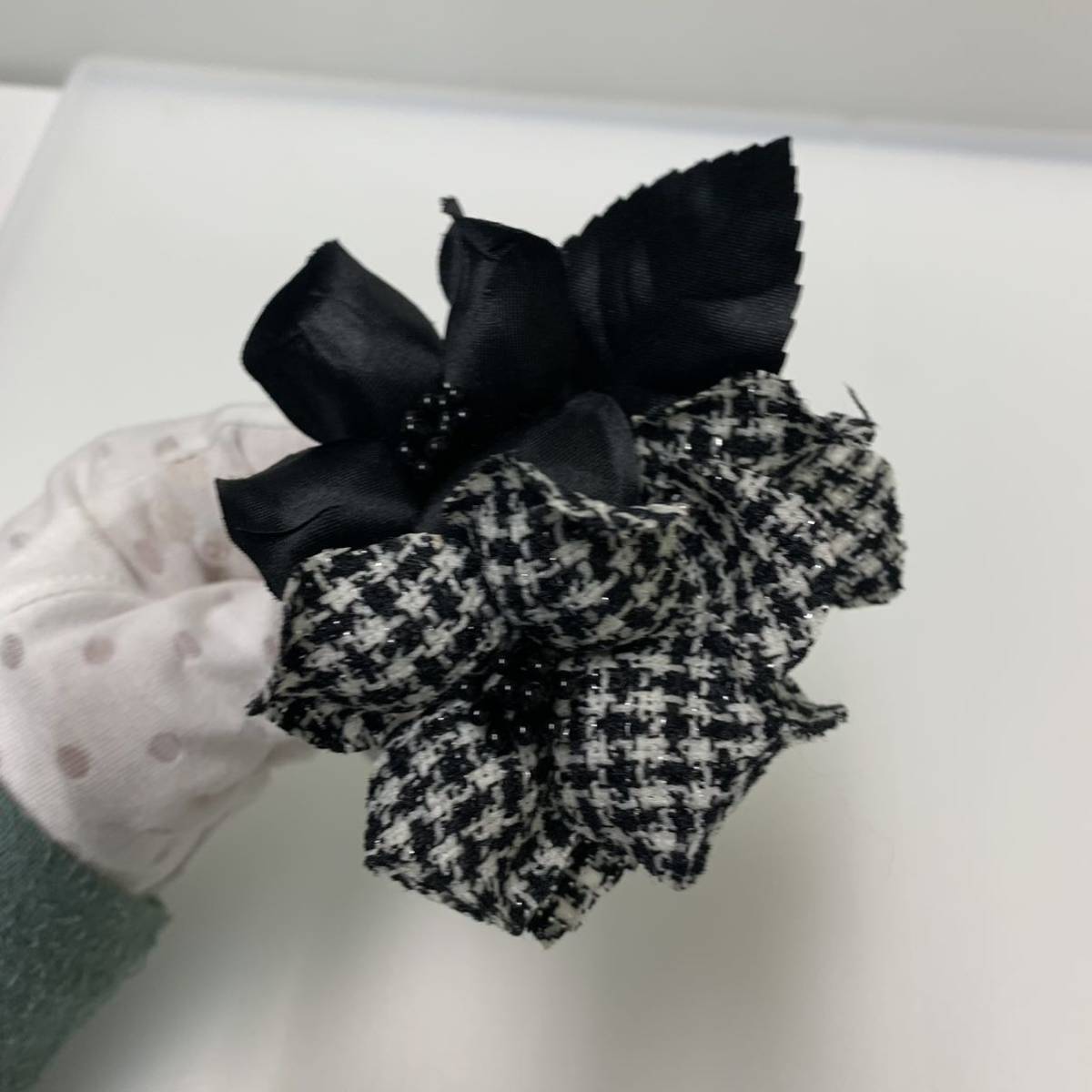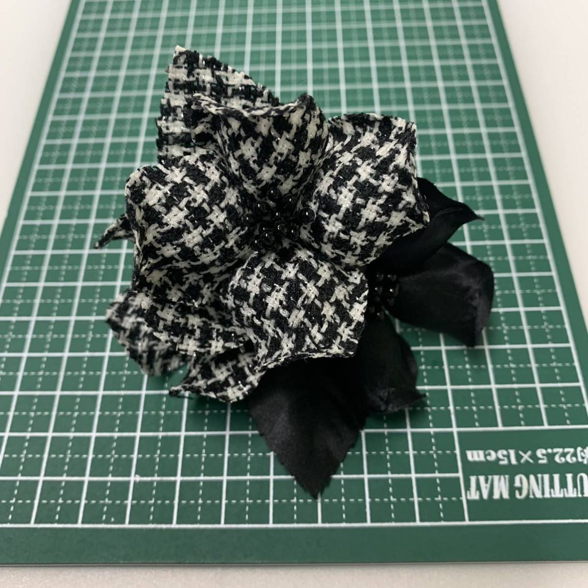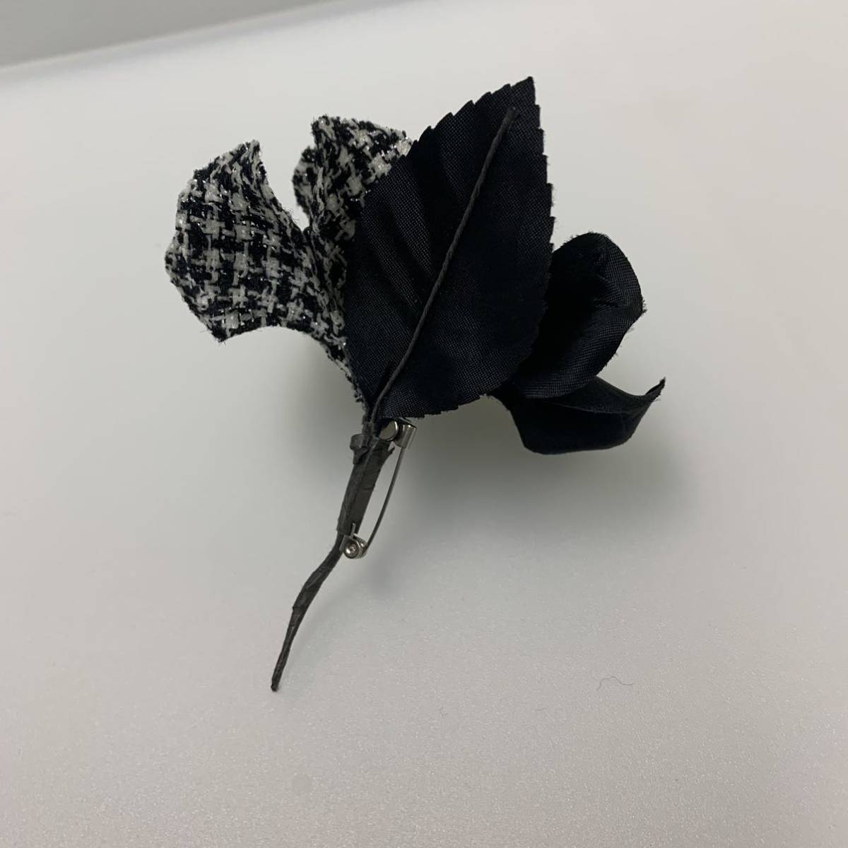 コサージュ黒/白黒チェックお花/上品/パーティ/セレモニー/入学式/フォーマル