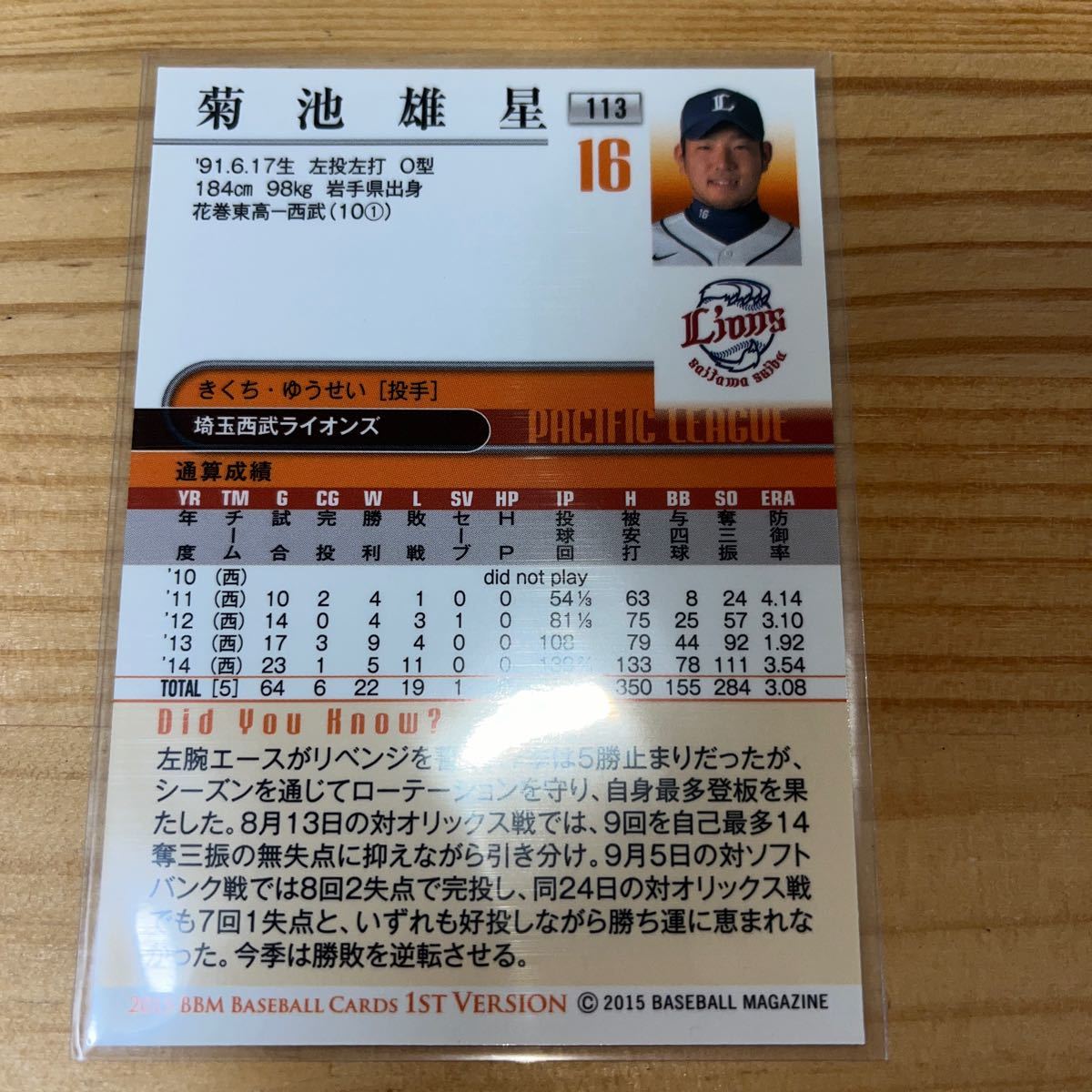 BBM2015 1st 113 菊池雄星です。