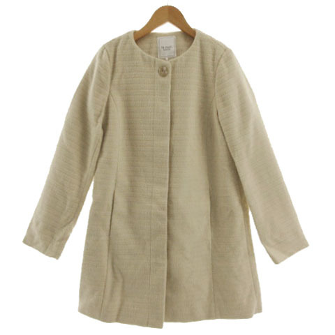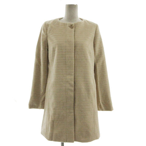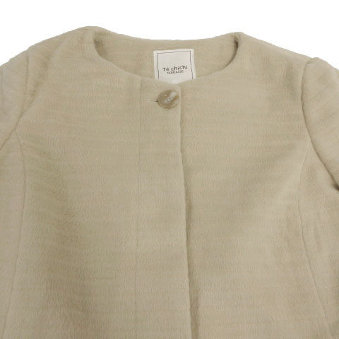 未使用品 テチチ Te chichi コート ノーカラー ボーダー柄 起毛 ベージュ M レディース