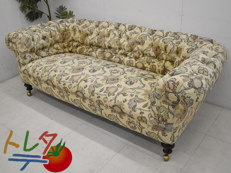 | イギリス アンティークソファ チェスターフィールド キャスター付 W2010 アンティークのアンティークソファ・チェスターフィールド(キャスター付)です。 ※かなり古いものをリペアし、生地の張替えをしているようです。 ※小さなシミ、ヒヤケ少々あります。 ※クッション2個付。 ※佐川急便ではなくJPロジスティクス(旧トールエクスプレスジャパン)社・西濃運輸・自社便・チャーター便・チャーター便(混載)等で弊社の判断によりお届け方法を決定させていただきます。 4t車が進入できる路上までのお届けとなります。 トラック荷台上でのお引渡しとなります。 男性2名以上での荷受けを推奨しております。 日曜祝日の配達日指定が出来ません。 配達時間帯指定が出来ません(9~17時着・配達当日配送ルートが決まるため)。 4t車が進入できない場所への配送・日曜祝日着・配達時間帯指定・トラックからの荷下ろし作業・搬入作業・組立作業等をご希望である場合はお見積りにて対応となりますのでお申し付けください(お見積りできない場合がございます)。 クリーニングとメンテナンスをしっかり行ってお届けします。 この商品は中古品として美品といえます。 多少の擦れや傷はあるものの気になるほどではないでしょう。 御使用端末の環境により多少画像の表示色と実物の色に差違が生じる場合がございますのでご了承ください。 |