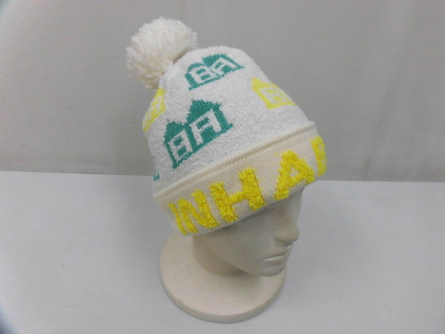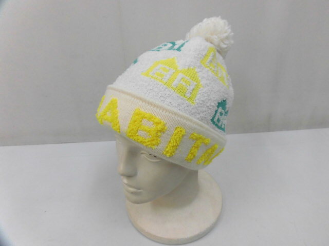 inhabitant インハビタント GENUINE PRODUCTS ニット帽 パイル ニットキャップ 帽子 ロゴ ホワイト 白 サイズF フリーサイズ