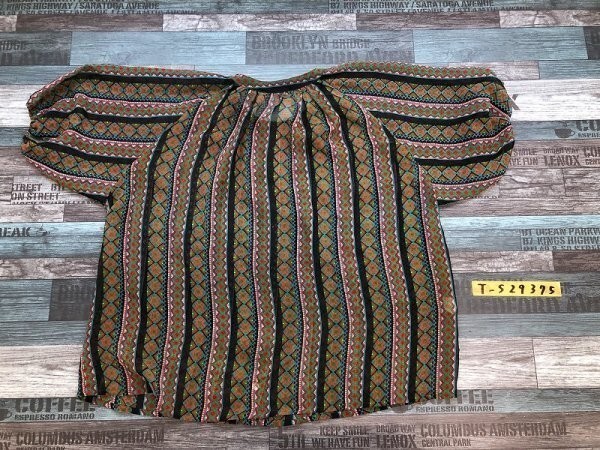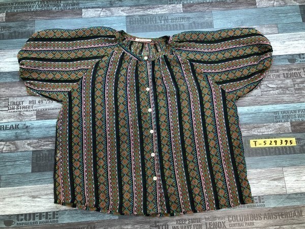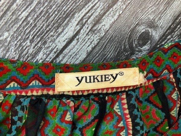 YUKIEY レディース チロリアンテープ風総柄 シースルーシャツ 紺緑など です。