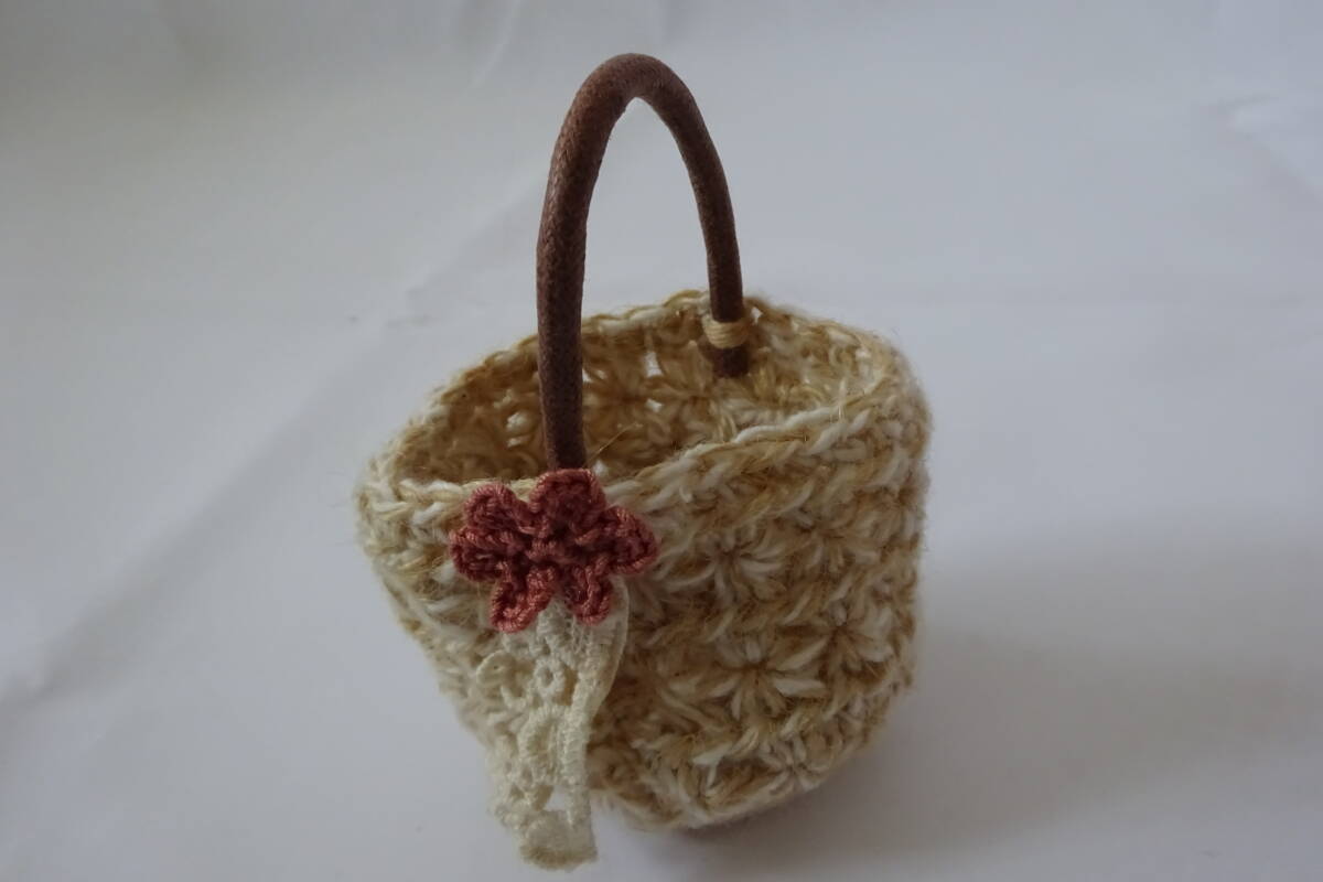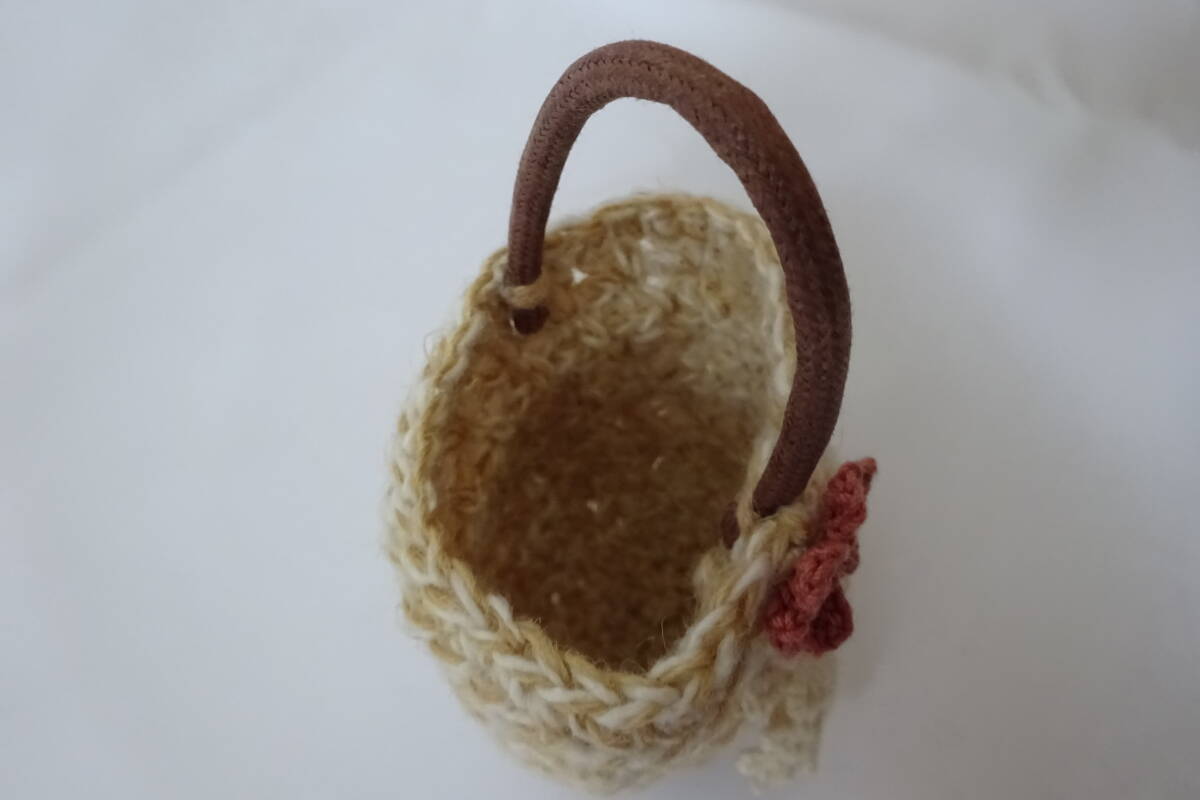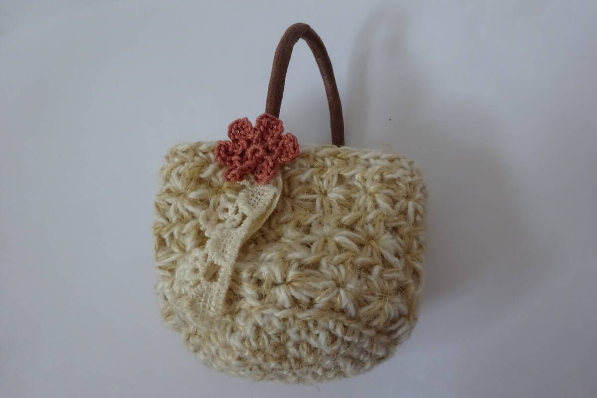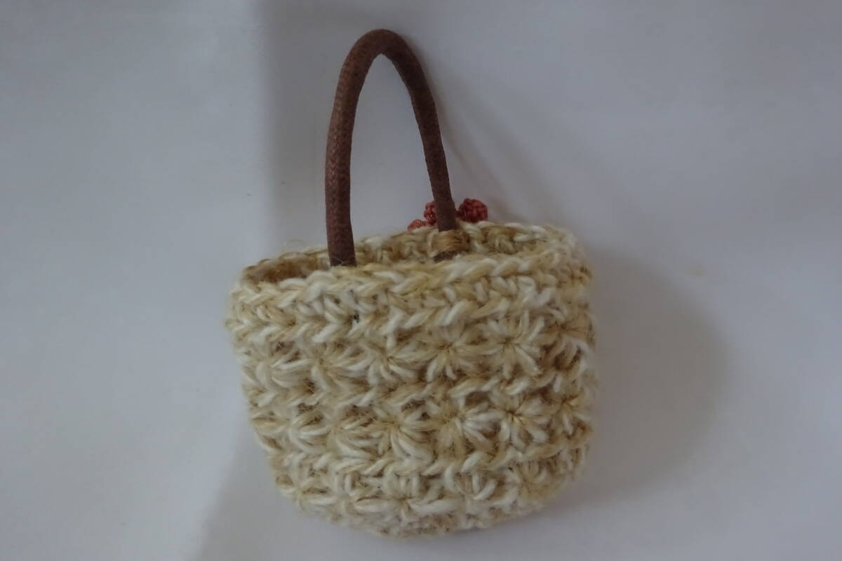 ハンドメイド 手編み☆ミニチュアサイズ☆ドールサイズ【小さな毛糸編みの丸型バッグ☆ナチュラルな風合い】ネオブライス 人形 フィギュア