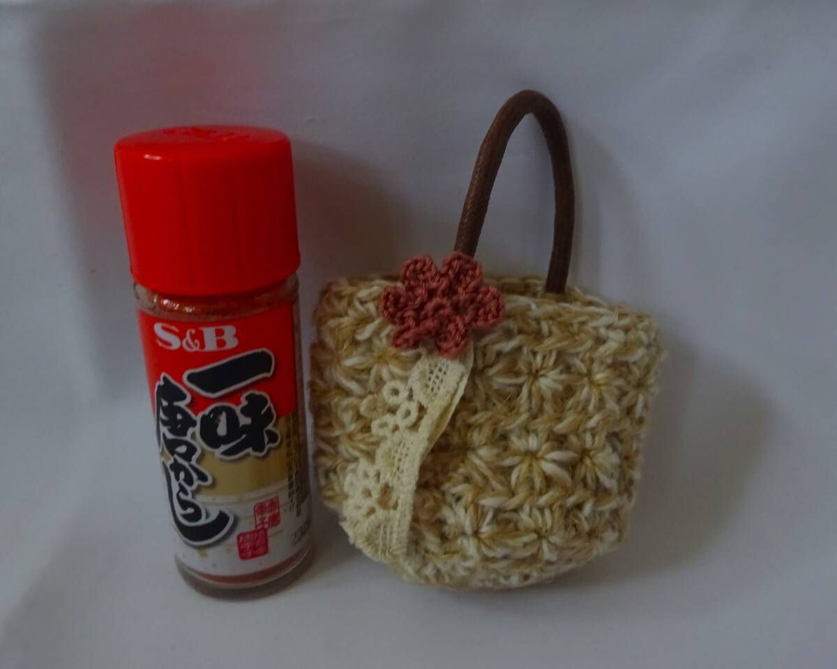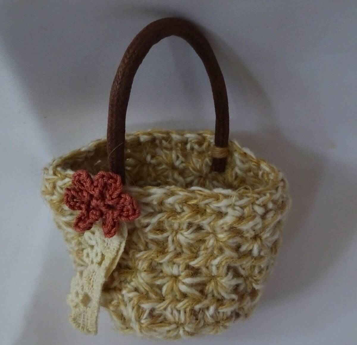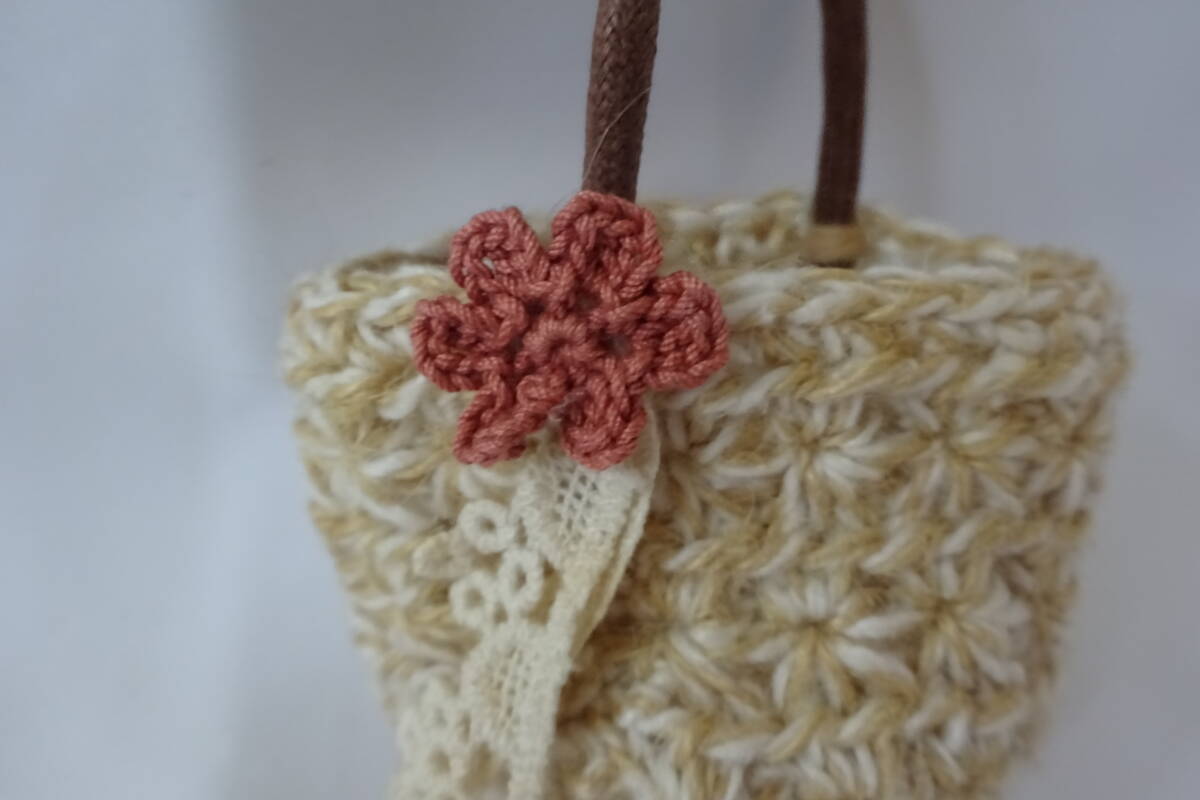 ハンドメイド 手編み☆ミニチュアサイズ☆ドールサイズ【小さな毛糸編みの丸型バッグ☆ナチュラルな風合い】ネオブライス 人形 フィギュア