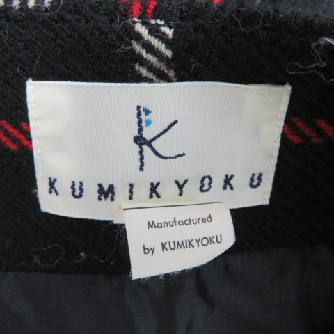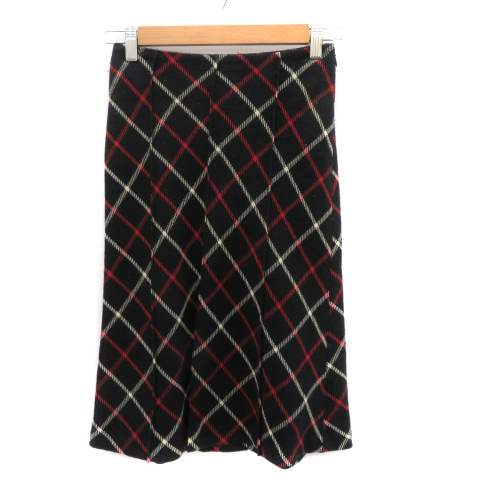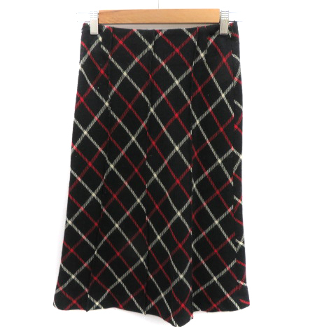 クミキョク 組曲 KUMIKYOKU フレアスカート ミモレ丈 チェック柄 ウール 1 マルチカラー 黒 ブラック /YK17 レディース