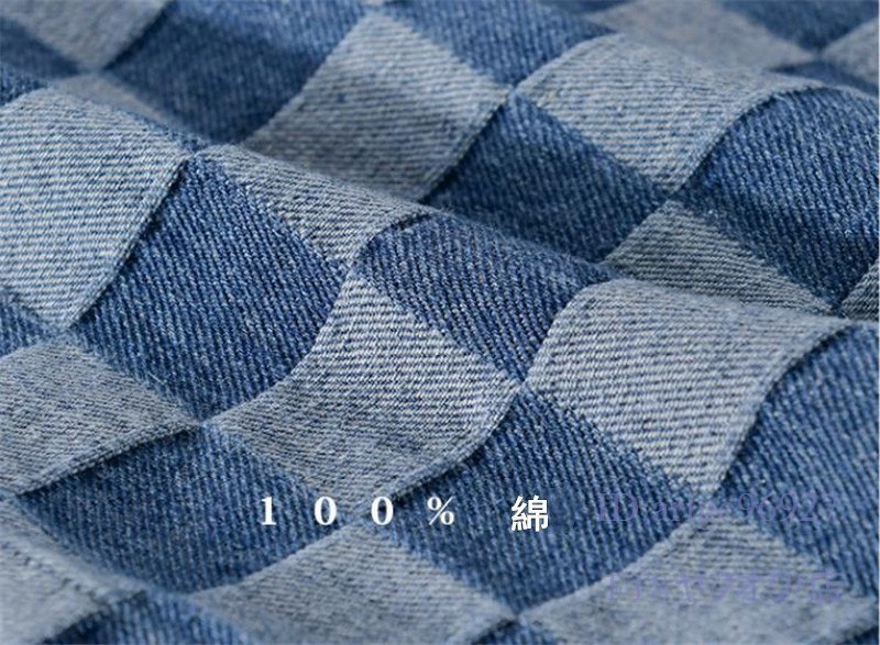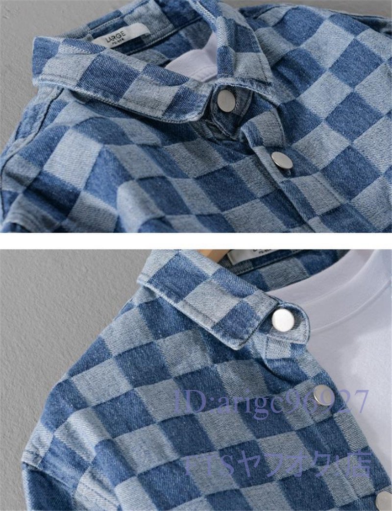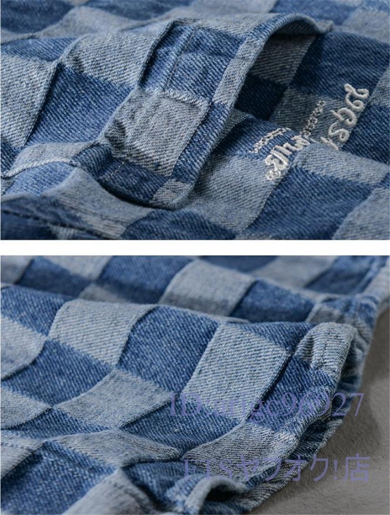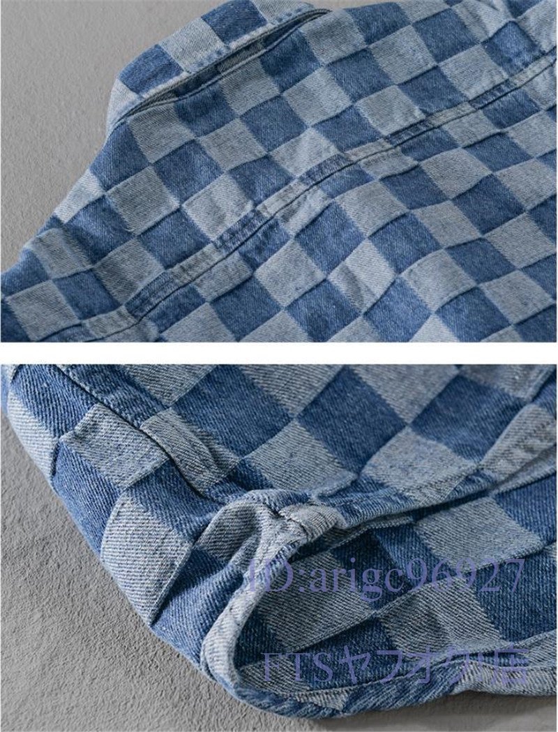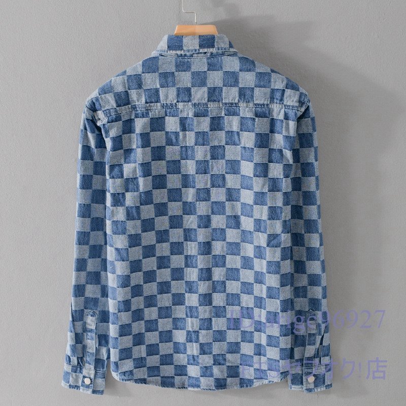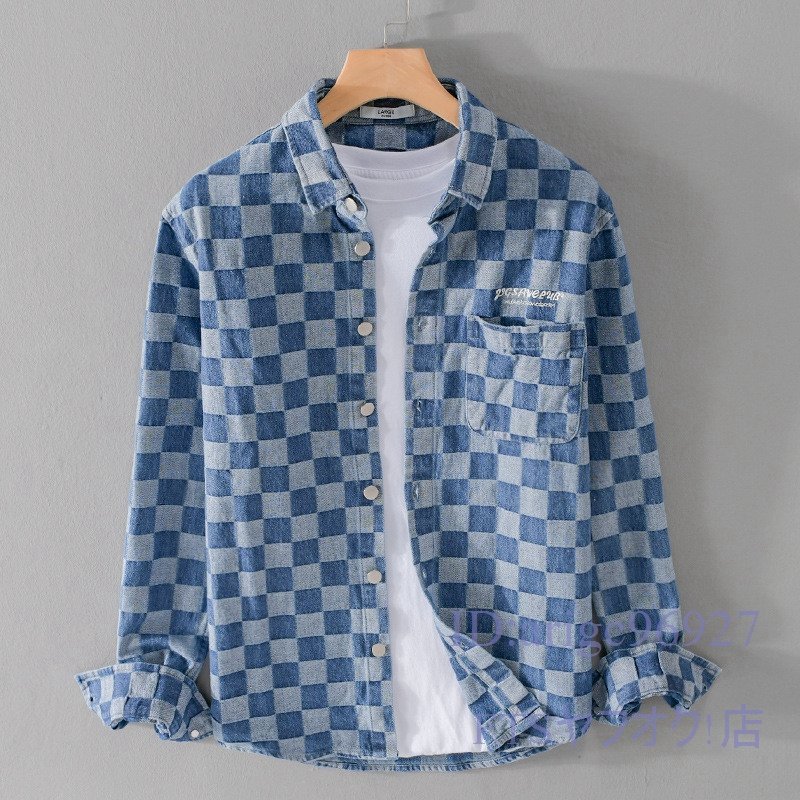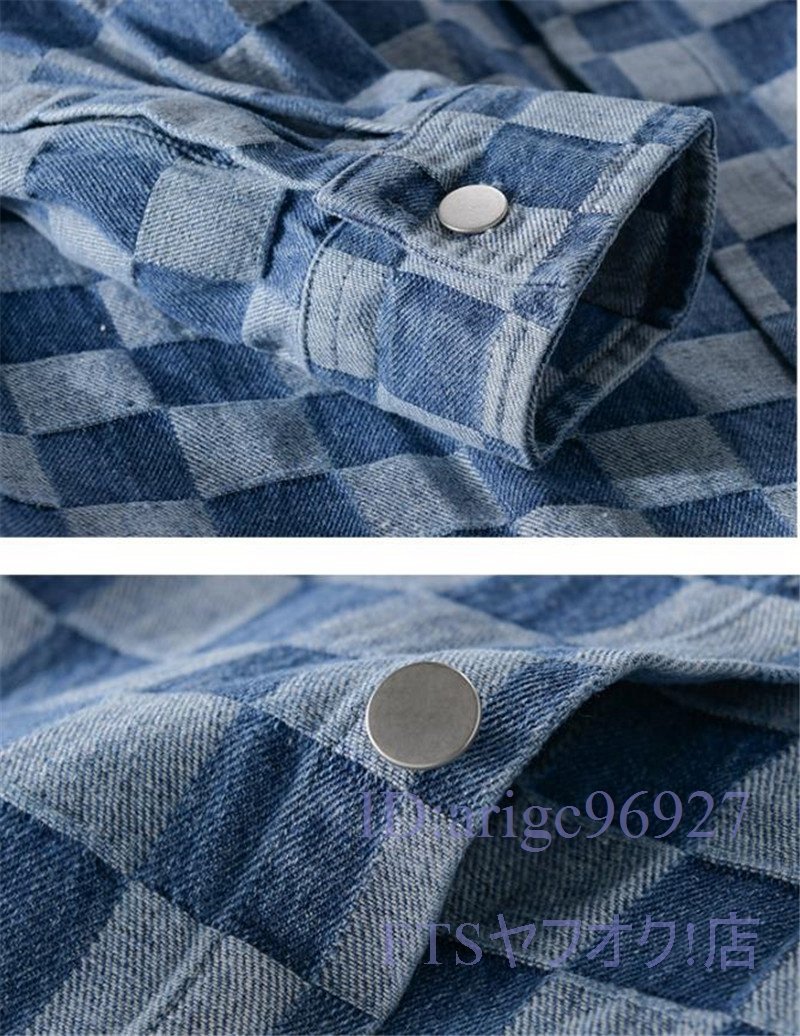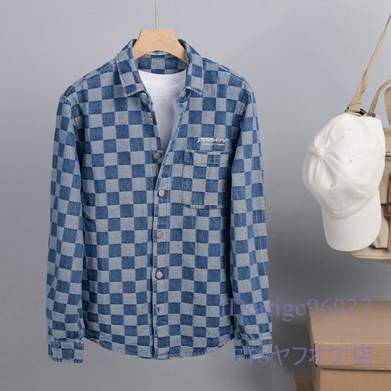 U071☆新品長袖シャツ シャツジャケット 開襟千鳥格子 ウエスタンシャツ 春秋冬服 ブルゾン メンズ* トップス カジュアル ブルー L
