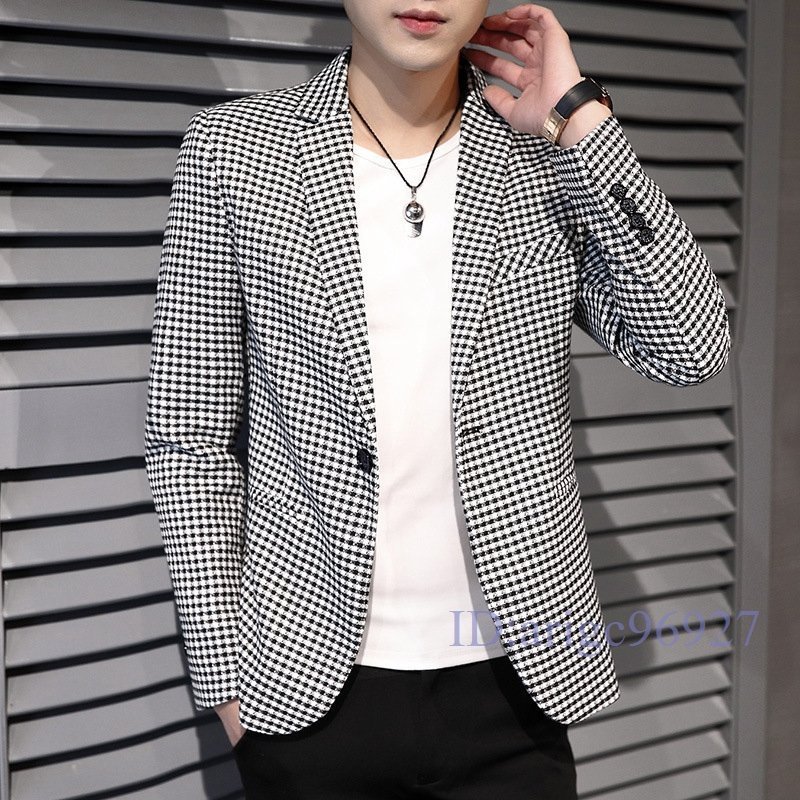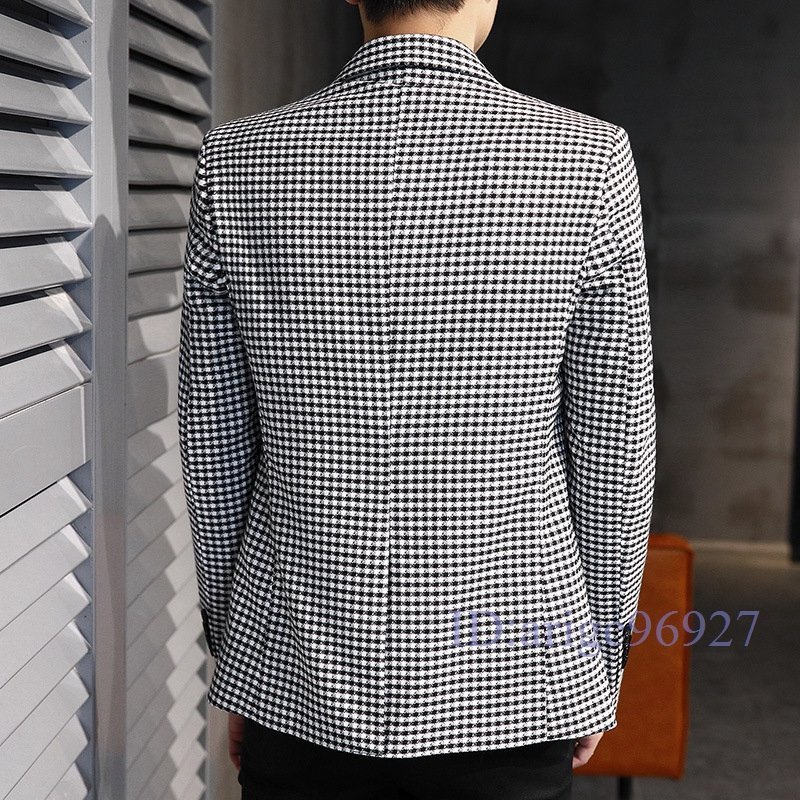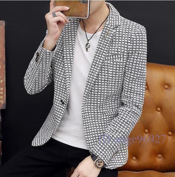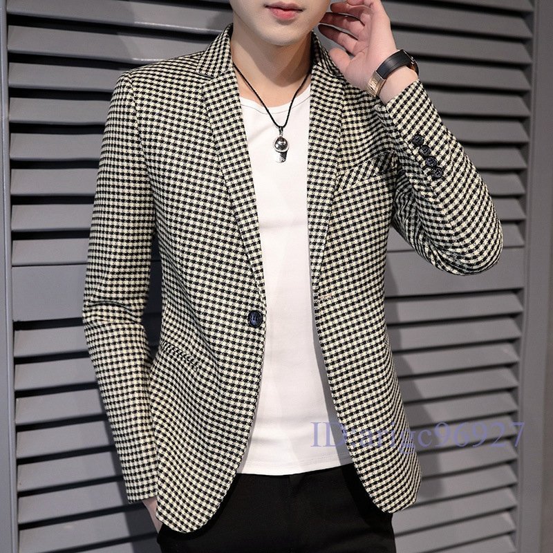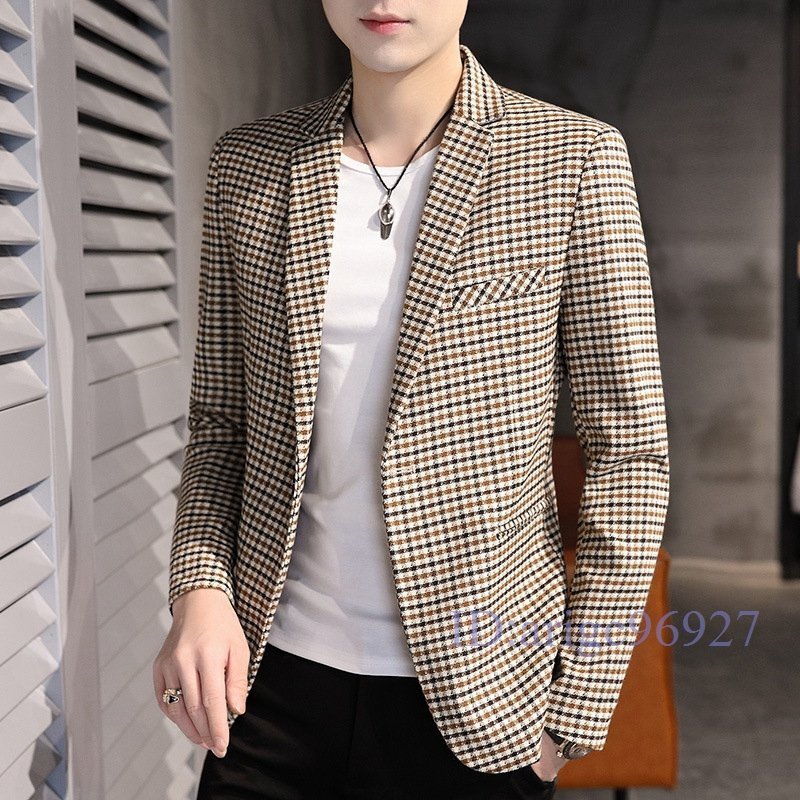 T644☆新品メンズ テーラードジャケット ブレザー カジュアルスーツ ビジネススーツ 通勤 春秋 アウター チェック カーキ M