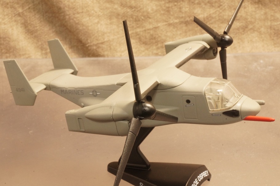 | アメリカ V-22 オスプレイ (Bell boe Osprey)1/150 です。 アメリカのベル社とボーイング社が共同開発した回転翼を傾けるティルトローター方式を採用し垂直離着陸機。 メーカー:Del Prado スケール:1/150 サイズ:長さ 約12.5cm / 幅 約11.5cm 材質は金属(ダイキャスト)とプラスチックです。 ディスプレイスタンドついてます。 ※撮影の為に開封 | |