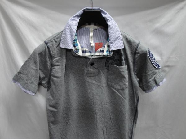 ポロシャツ 2枚衿フェイクレイヤード プリント天竺 Mサイズ 杢グレィ OIL CAKE★新品格安!