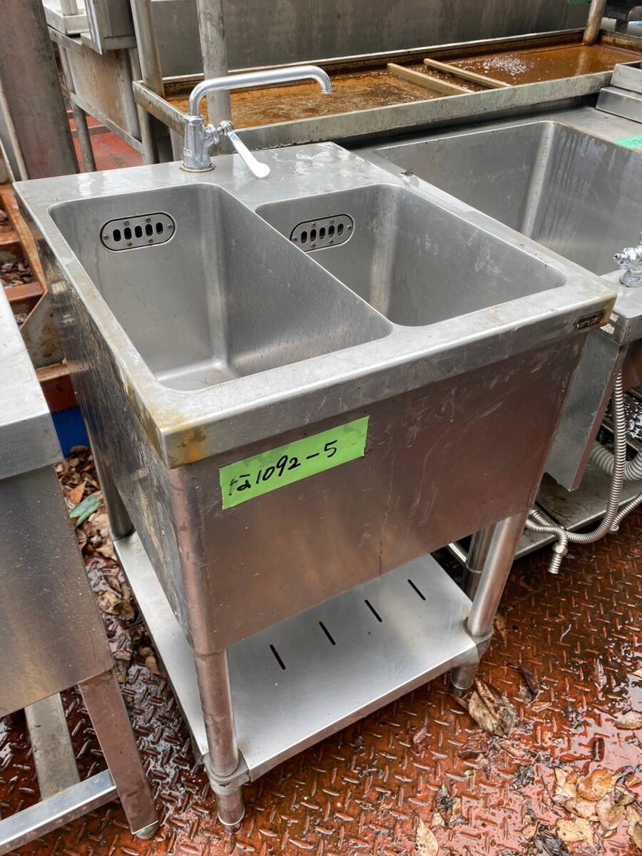 | な1092-5 【綺麗に洗浄してからお届け致します!】新品ホース1m付 マルゼン 二槽シンク ワンタッチ水栓 W500×D600×H820mm | |||||||||||