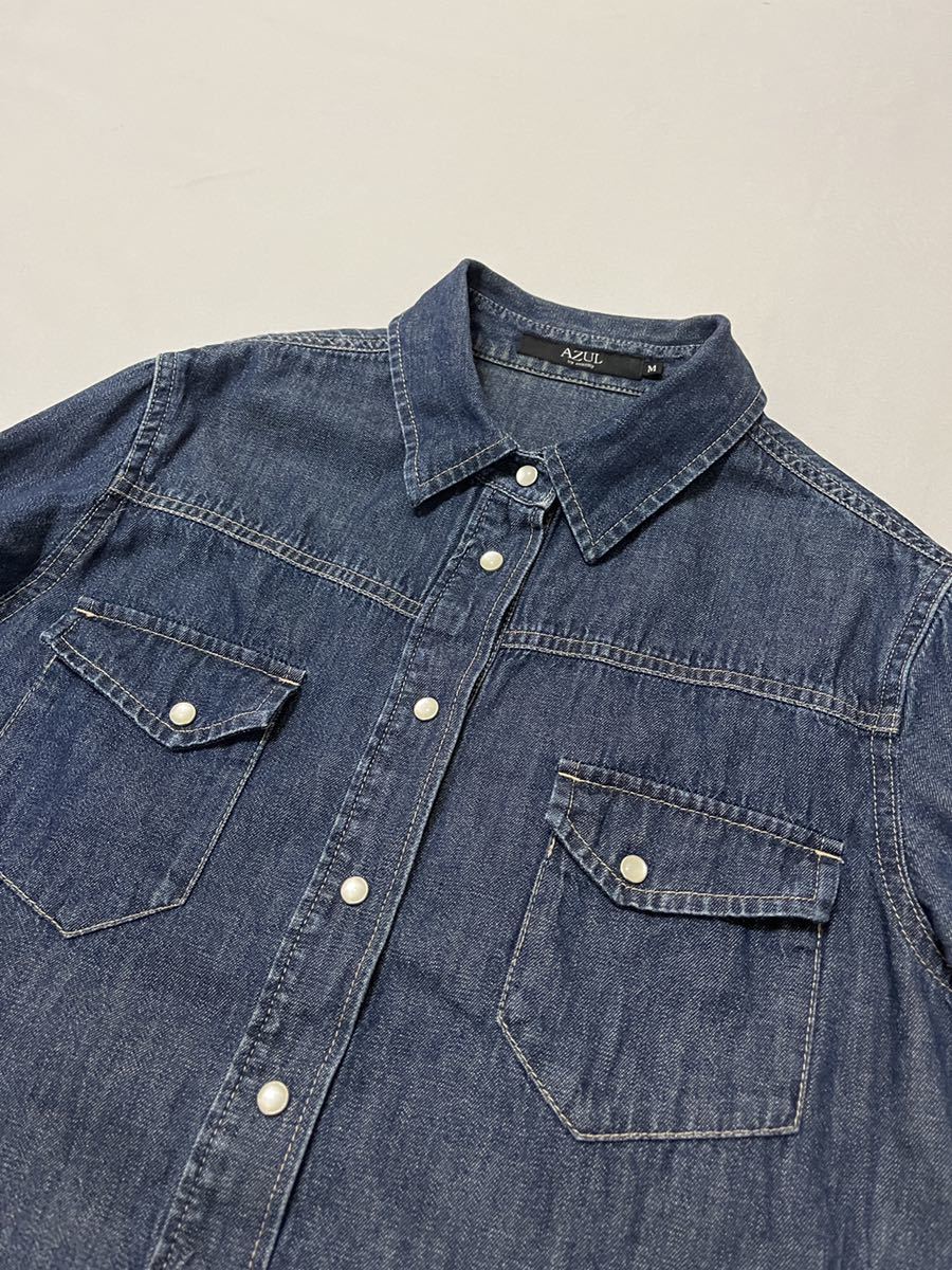 コットン100%素材の薄手で柔らかい素材感のデニムウエスタンシャツです。