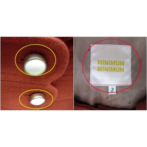 ミニマム MINIMUM ステンカラーコート ショート丈 無地 ウール 2 赤 レッド /YS1 ■MO レディース