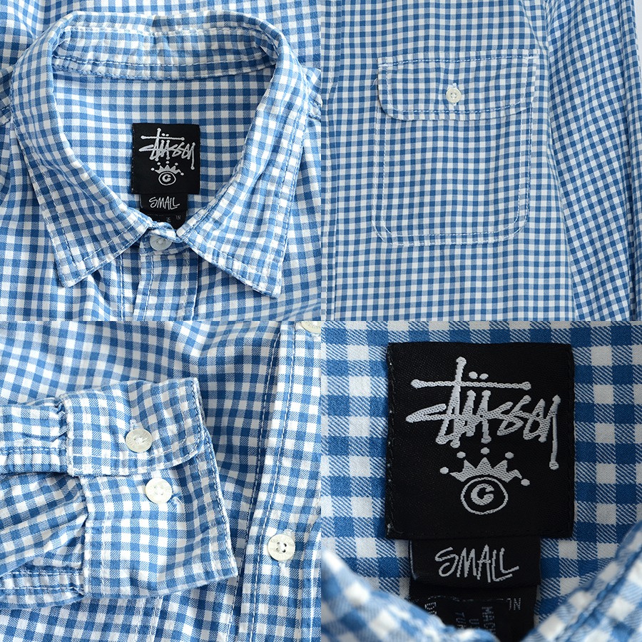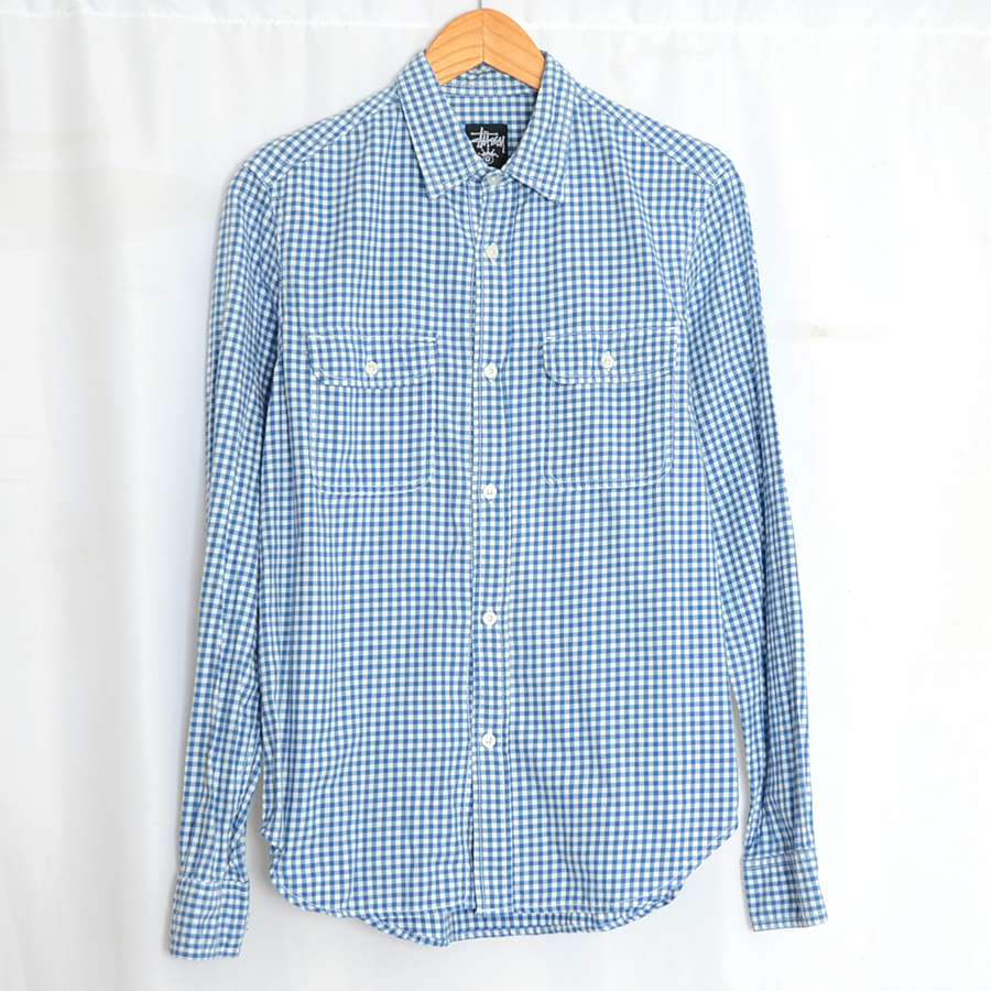 AS205 ステューシー STUSSY 長袖シャツ S 肩42 ギンガムチェック メール便発送可 xq