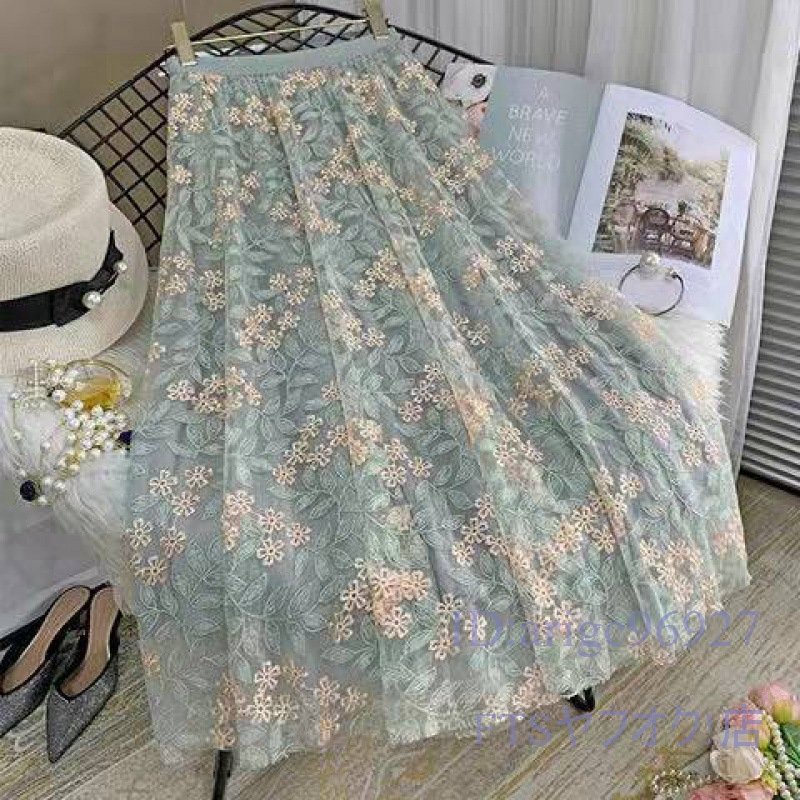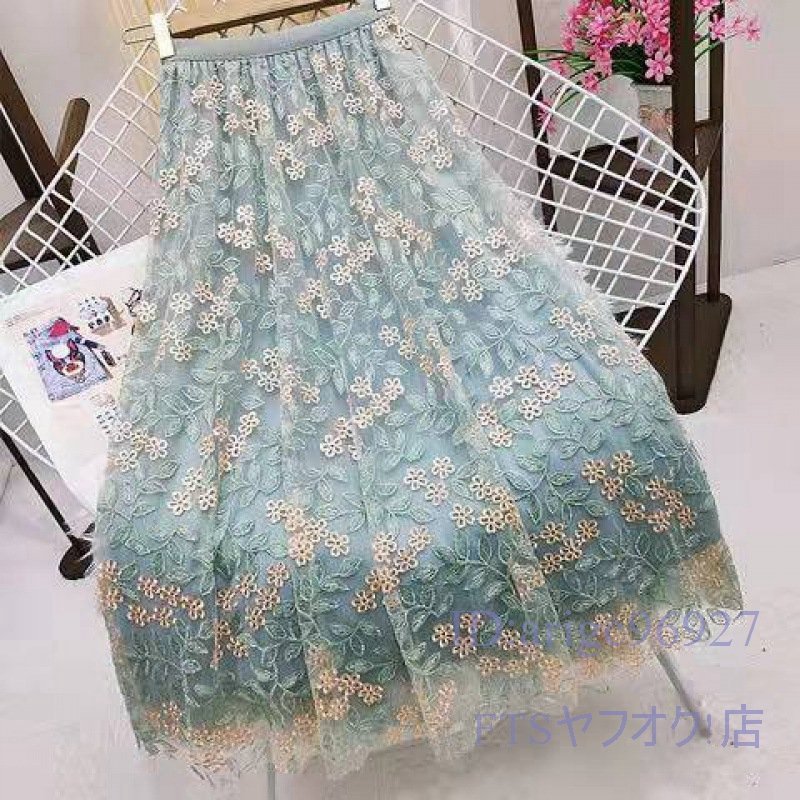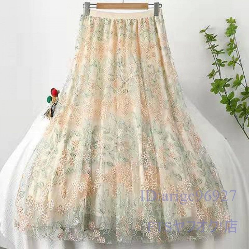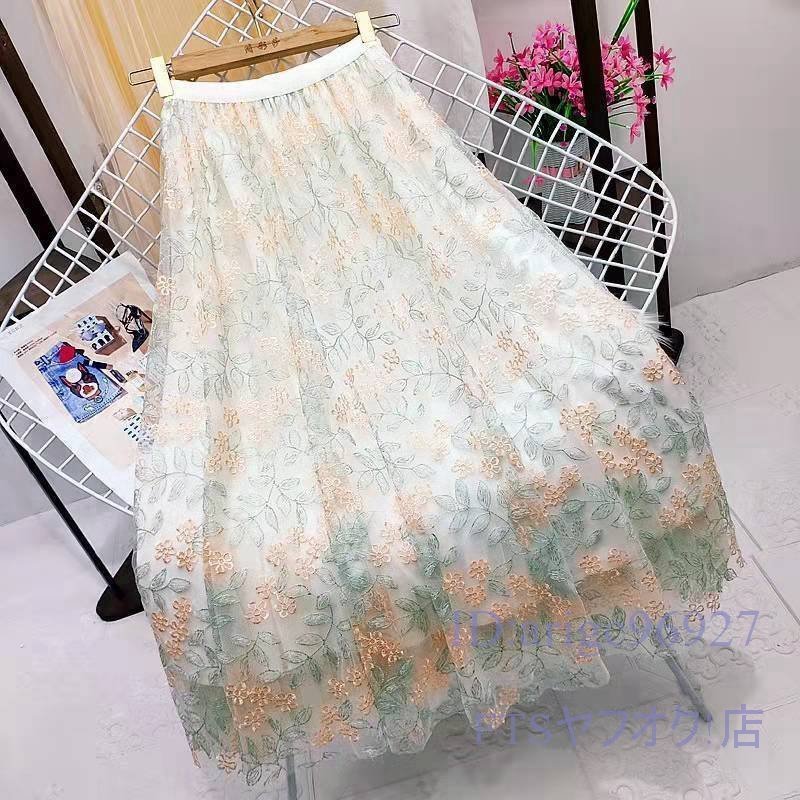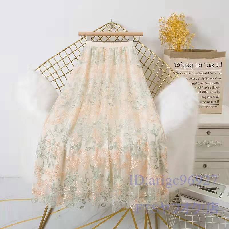 A2259☆新品春夏秋 ゆったり 大きいサイズ 可愛い レディース チュールスカート ロング 刺 花柄