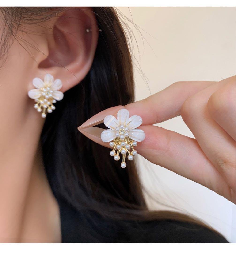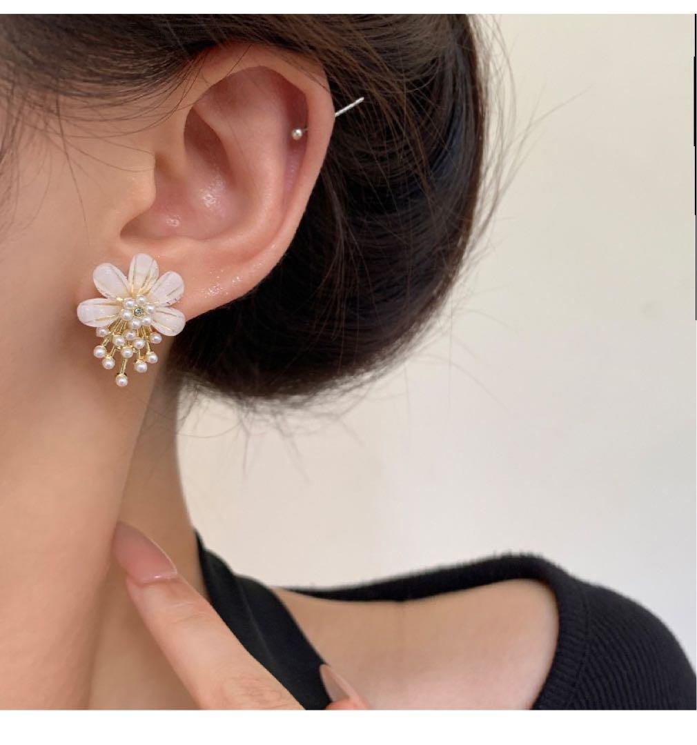 新品 お花のピアス レディースピアス シルバー925 ピアス 白 アレルギー対応