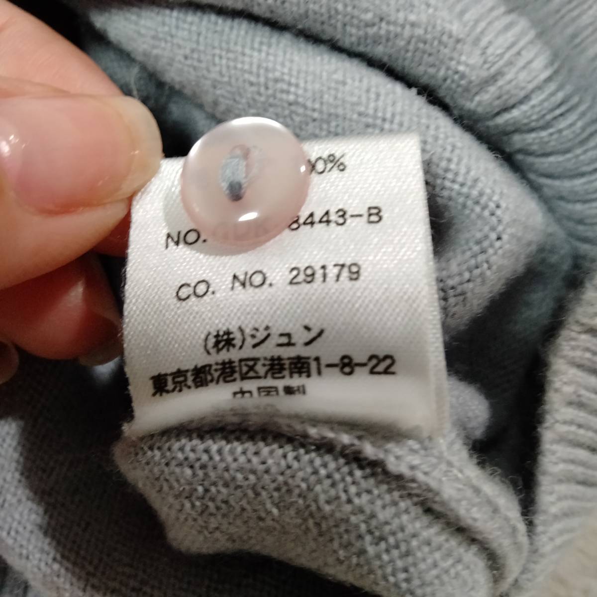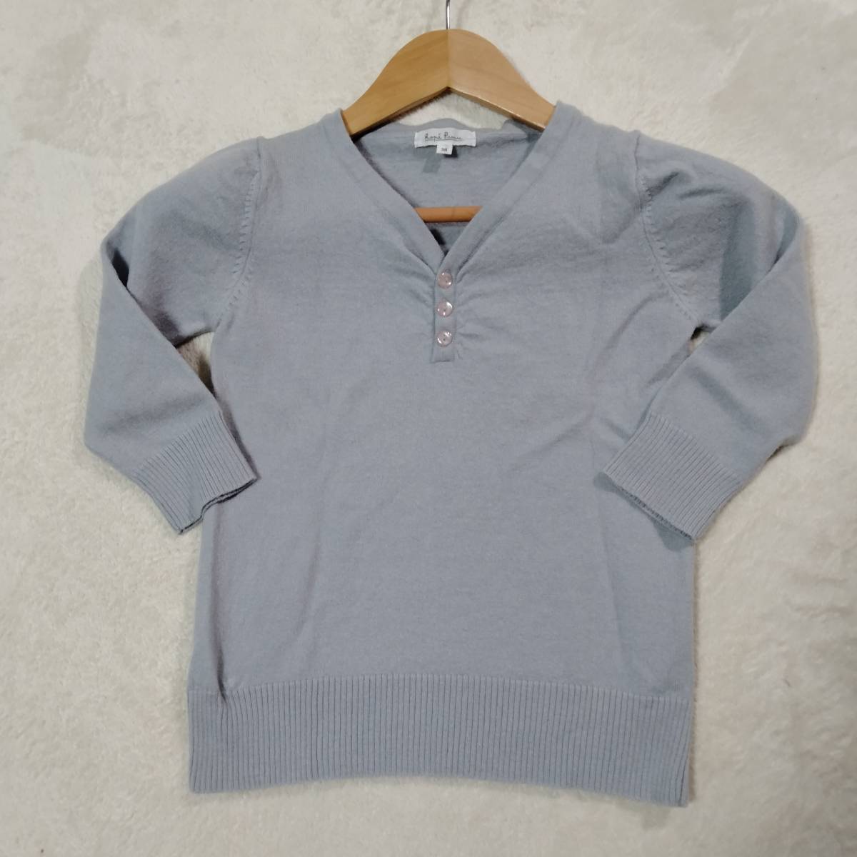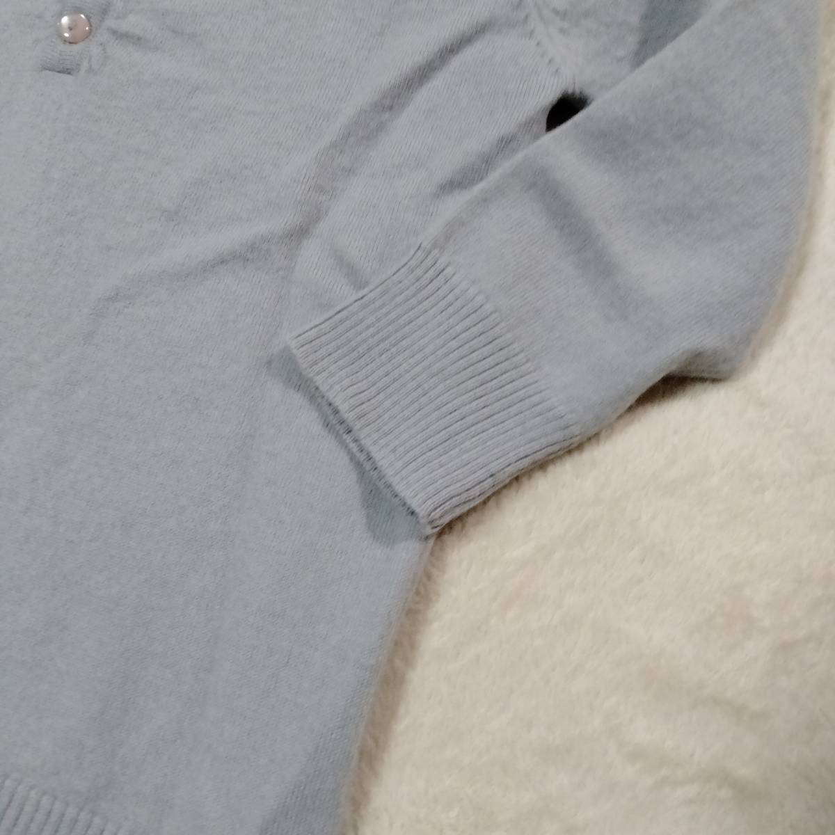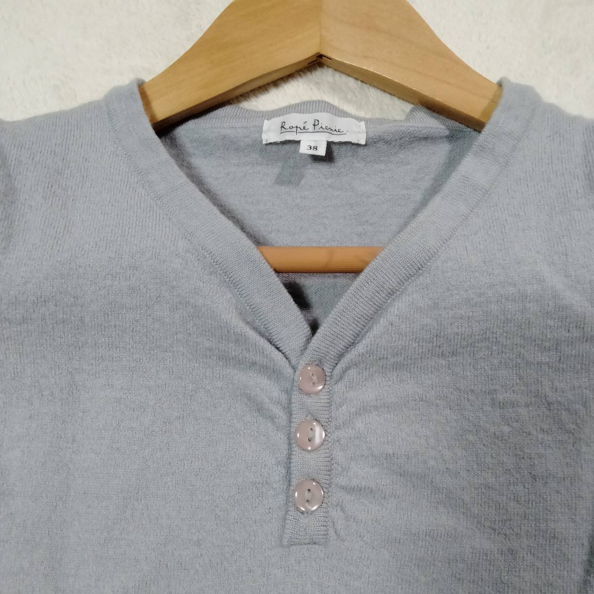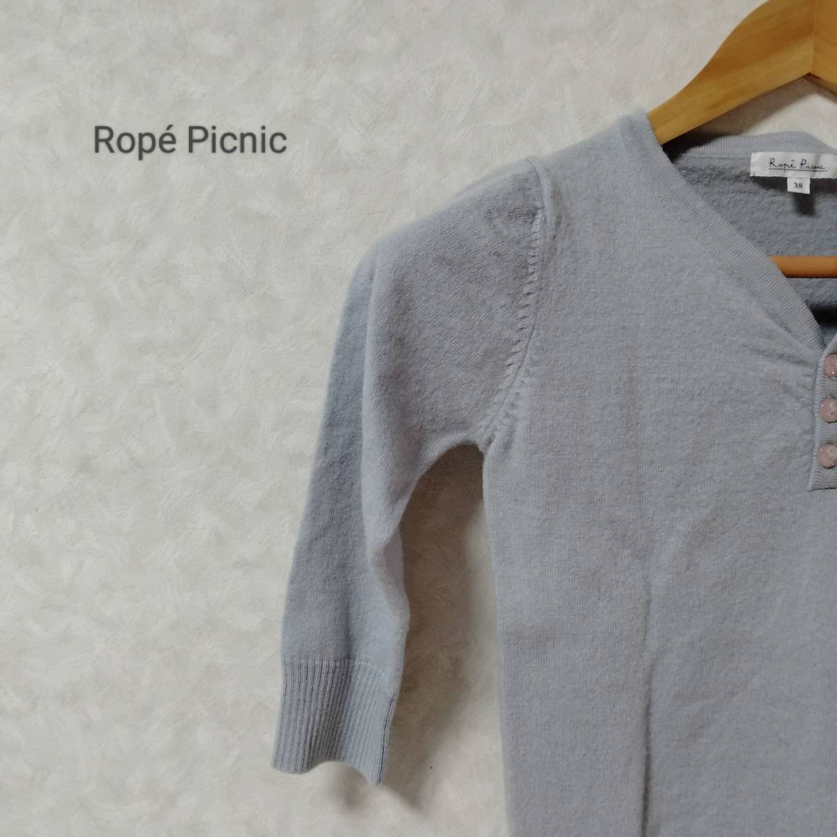 ROP PICNIC ロペピクニック ニット トップス Vネック ボタン 長袖 無地 ショート丈 リブ キレイめ 上品 ブルーグレー サイズ38 SJ51