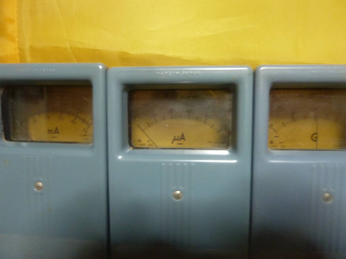 先ず交流V電圧計(写真1番目)はジャンク品になります。指針がありません。また製品を振ると音がします。写真6番目が交流V電圧計になりますが容器が欠けていますのでたぶん落として壊れたものと思われます。寸法は縦約15㎝、横約8㎝、奥行き約5㎝になります。動作確認ですが写真8番目で直流Vを写真9番目で直流mAの2個だけですが実施しております。写真7番目が直流mAで容器が欠けておりますが動作確認できました。なお、直流Aはありませんが直流mAの接続端子が50mA、500mA、5Aですので5Aまでは測れます。(写真10番目参照)商品の状態はジャンク品も含みますので「全体的に状態が悪い」にしております。よろしくお願いします。