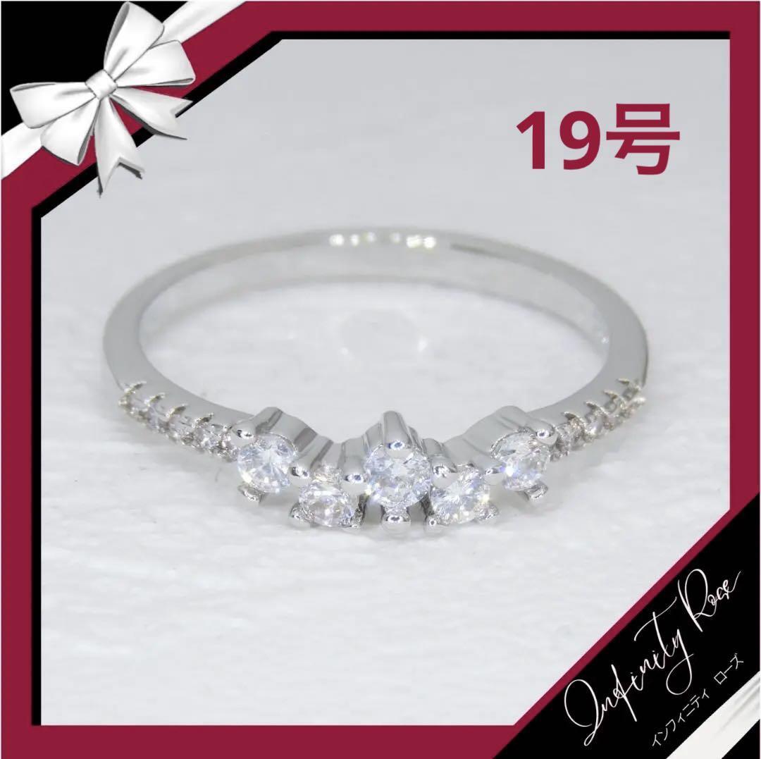 (R048S)19号 シルバーシャンデリア煌めく細リング 高価爪留指輪