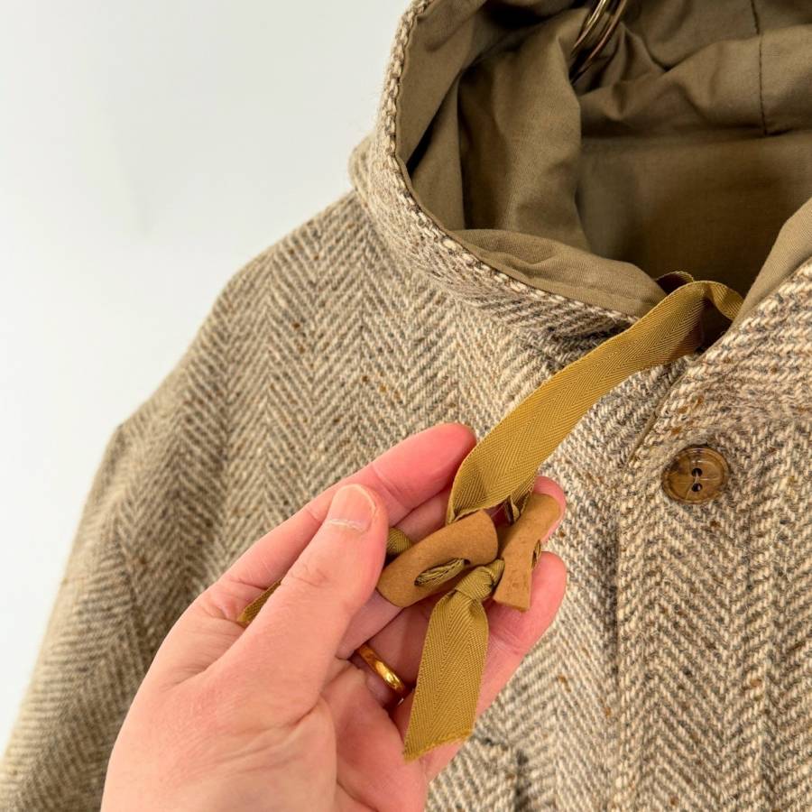 ゴワっと硬めのウールツイード生地とコットンの両面。