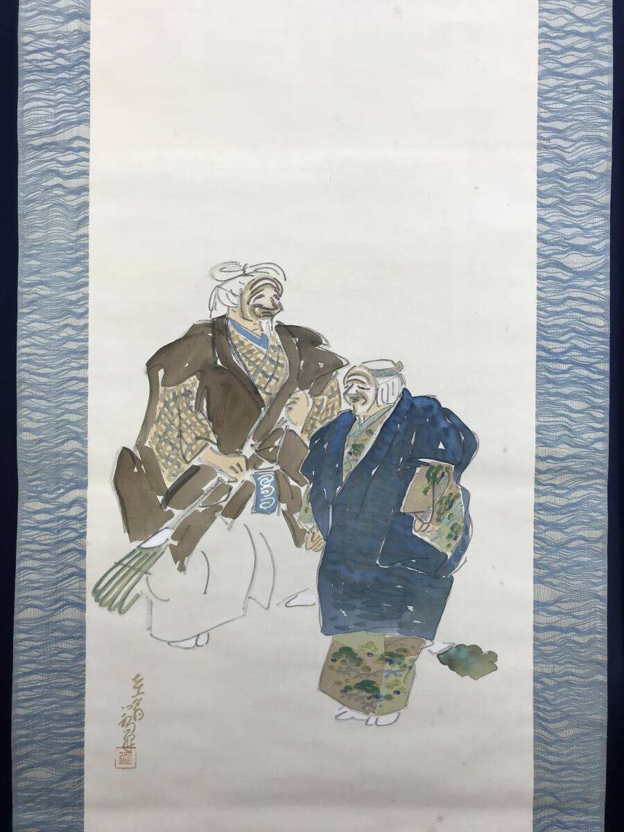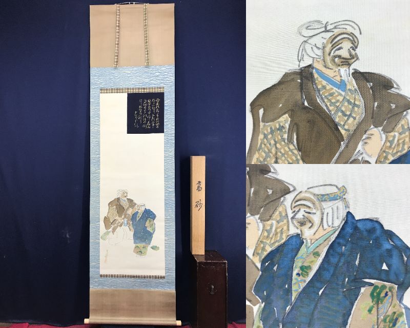 真作/伊勢門水/高砂図/祝掛軸/正月掛軸/人物図/掛軸☆宝船☆AE-495