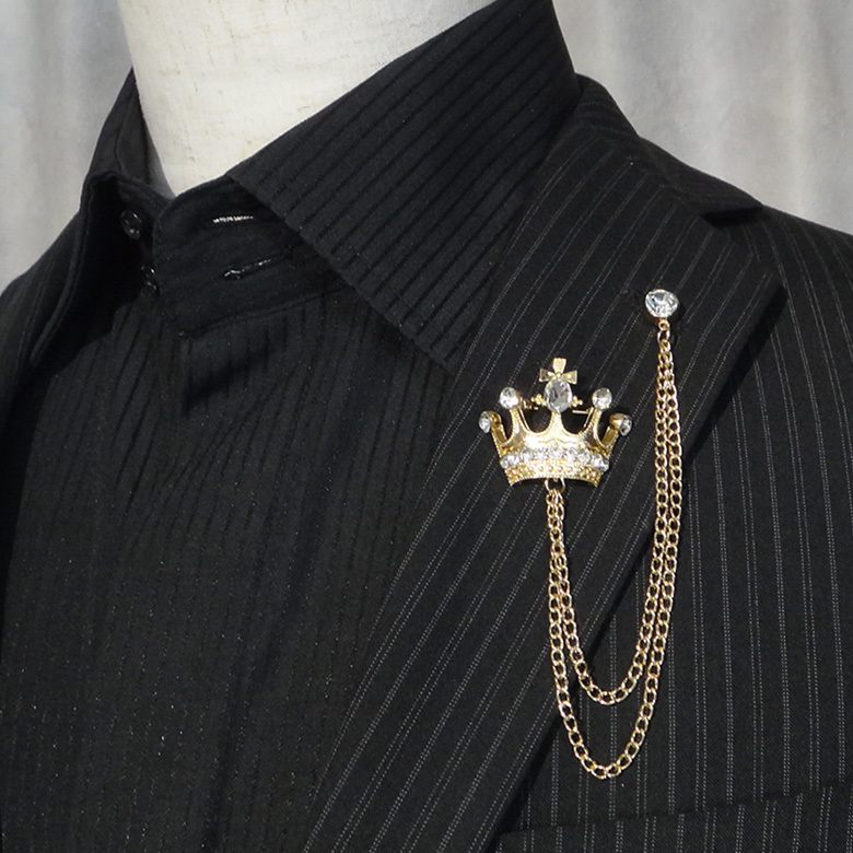 シルバーとゴールドの2色展開で、こちらはゴールドです。王冠モチーフに、ストーンがきらきらゴージャスなブローチ。