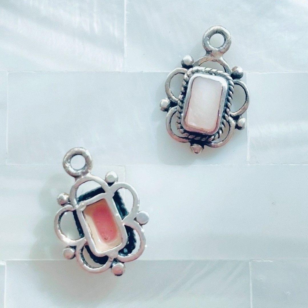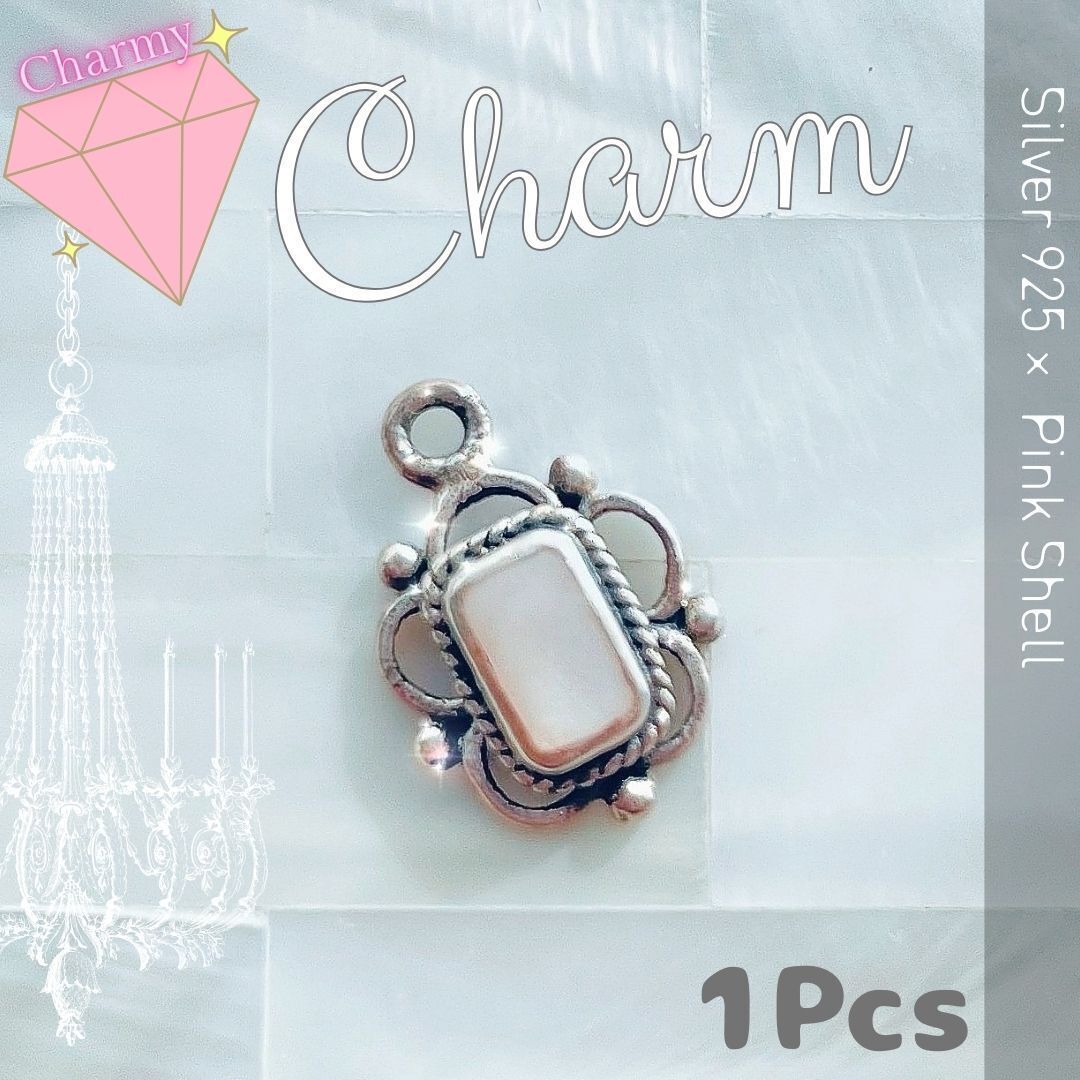 艶やかな 天然素材 ピンクシェル を シルバーの繊細な アラベスク デザイン でお仕立てしたシルバーチャームです。