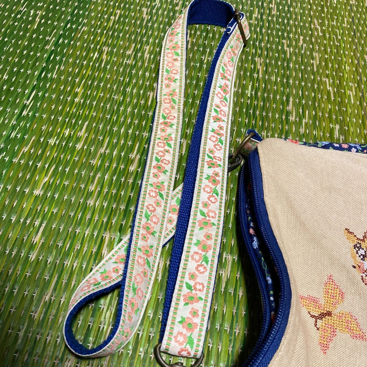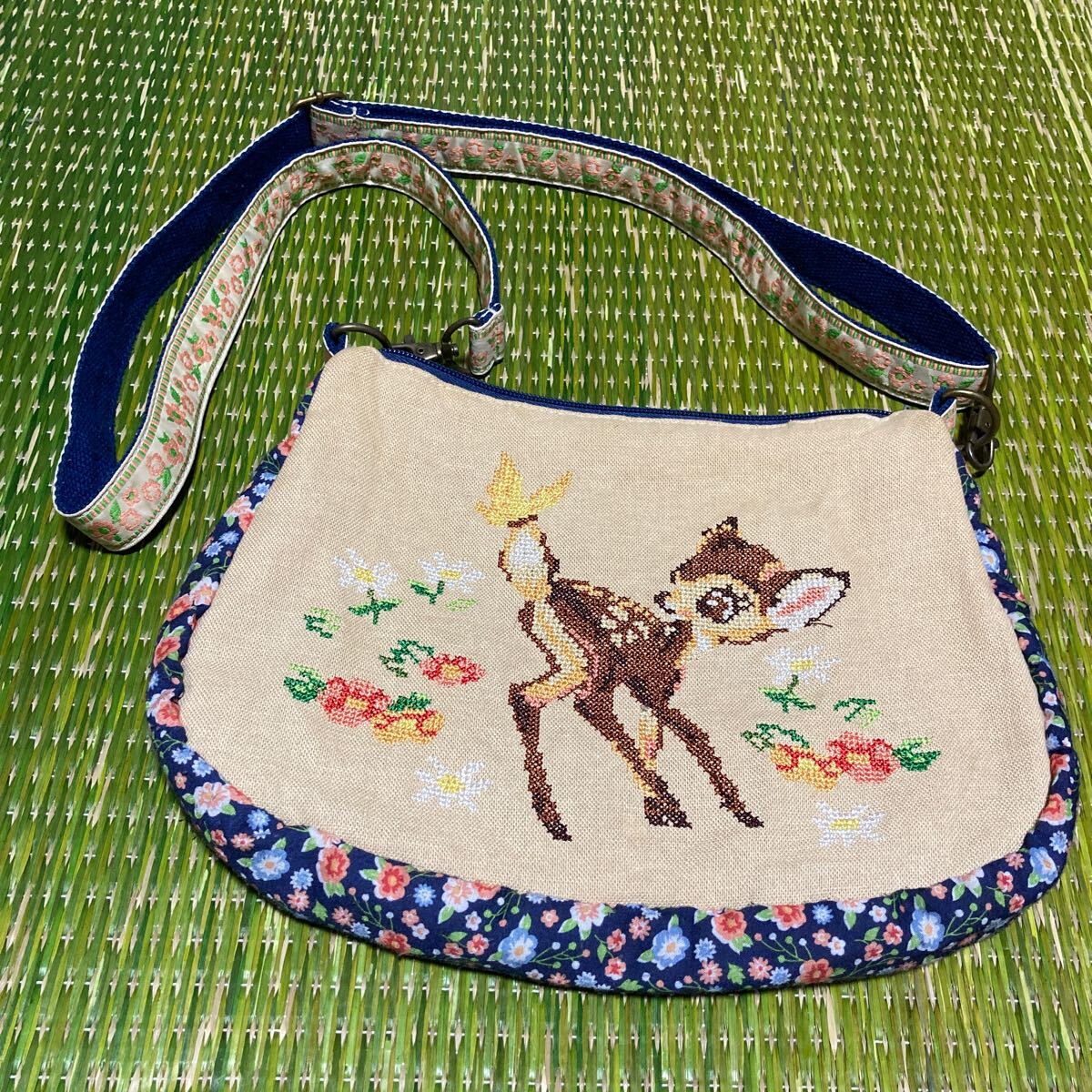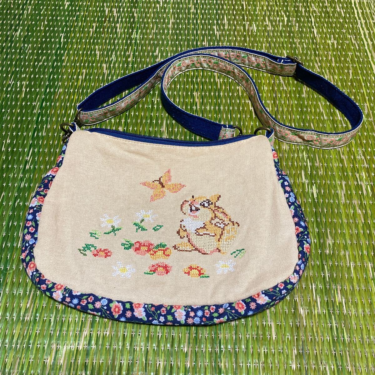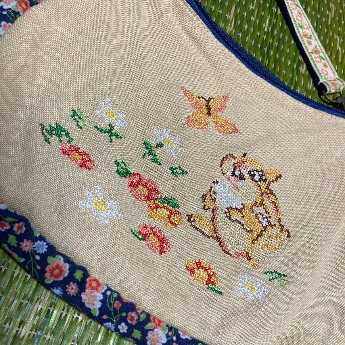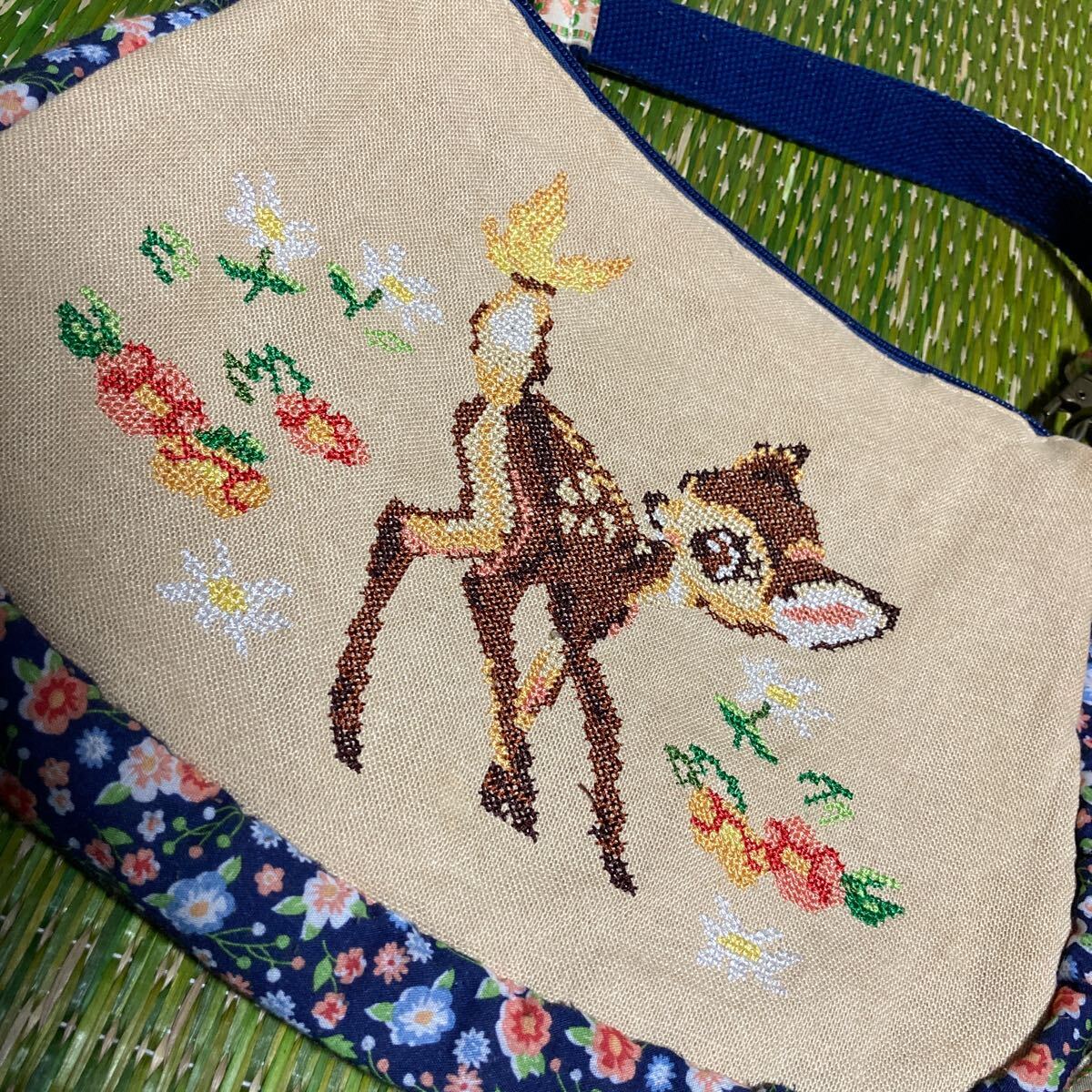 バンビととんすけのクロスステッチの刺繍と可愛いポシェットです。